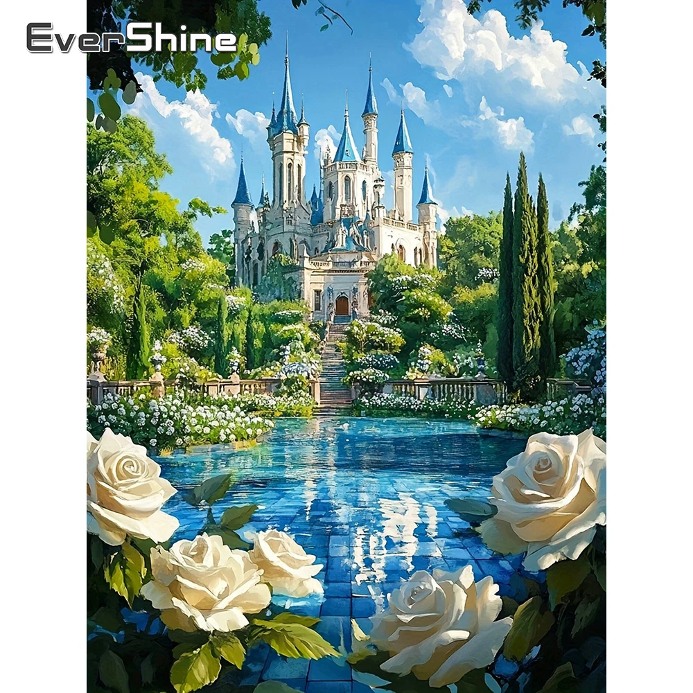 Broderie Diamant EverShine : Peinture Paysagère de Jardin, Château, Mosaïque de St...