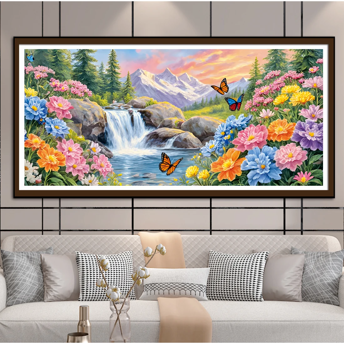 Un paysage cascade fleur papillon kit de point de croix, sér...