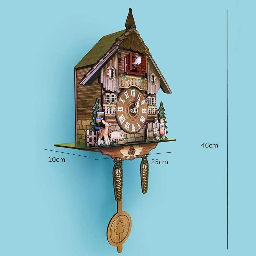 Horloge murale coucou, horloge murale vintage en bois avec décoration d'horloge murale pendul...