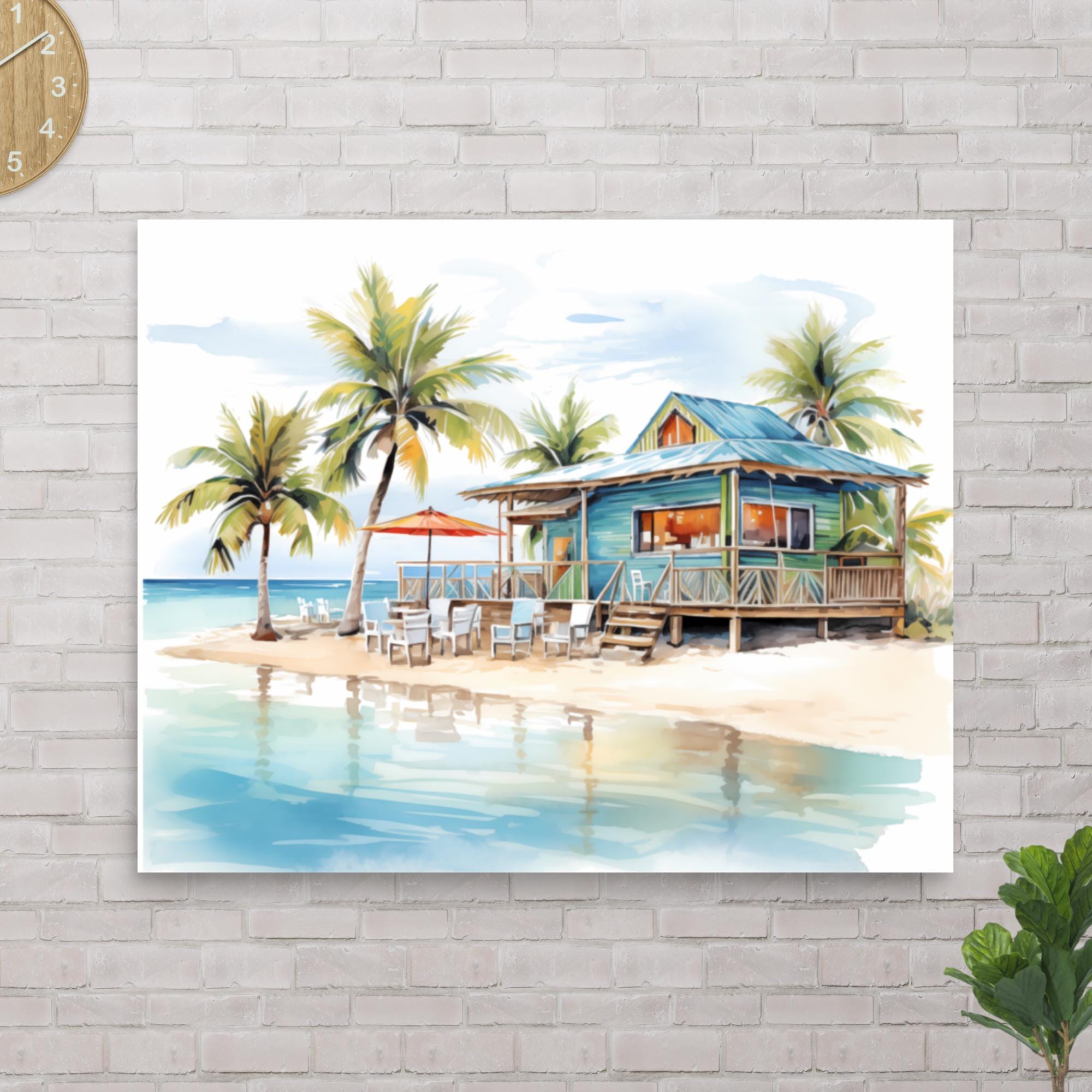 Impression tropicale de Key West, restaurant en bord de plage, art ...