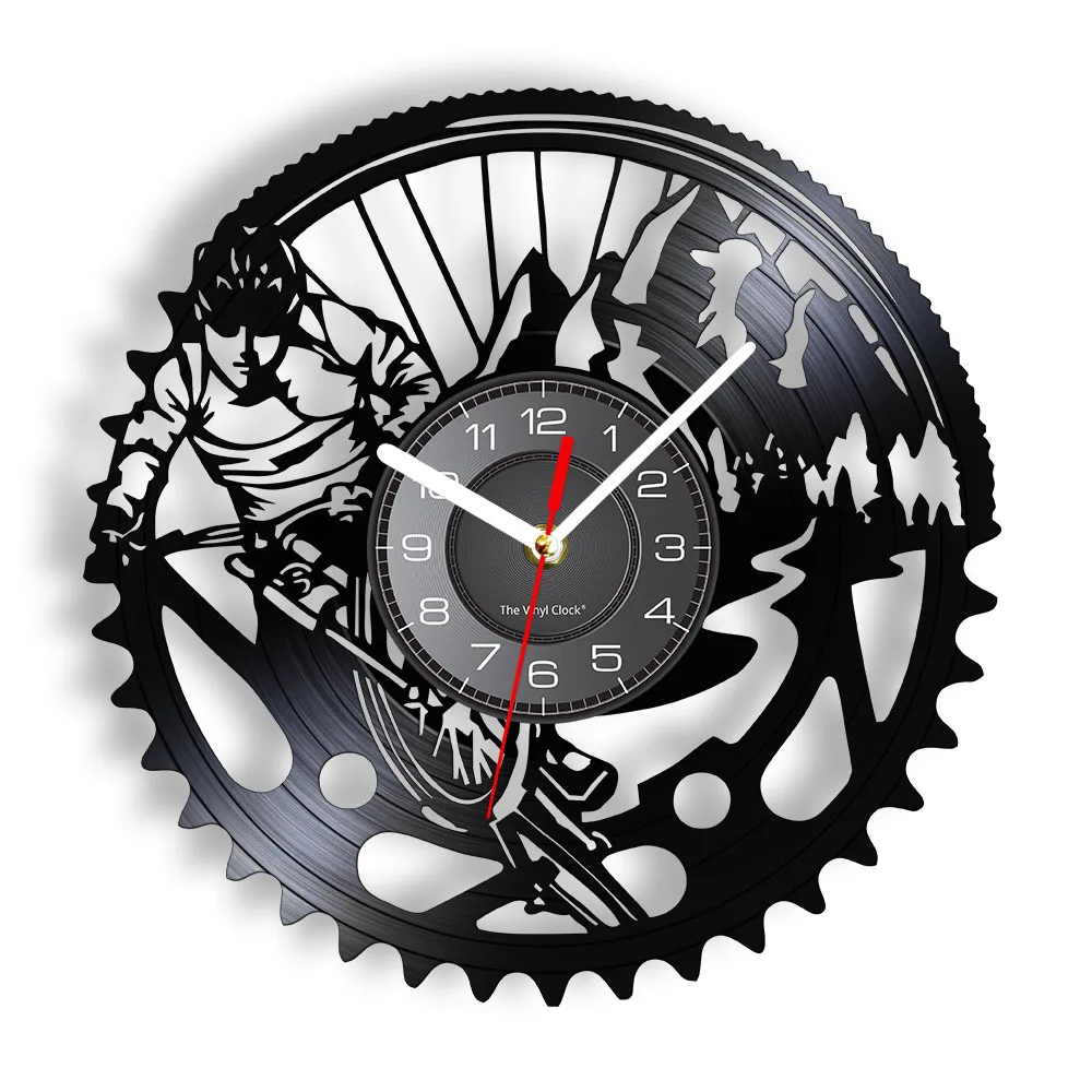 Horloge murale de vélo de montagne avec disque vinyle, horlo...