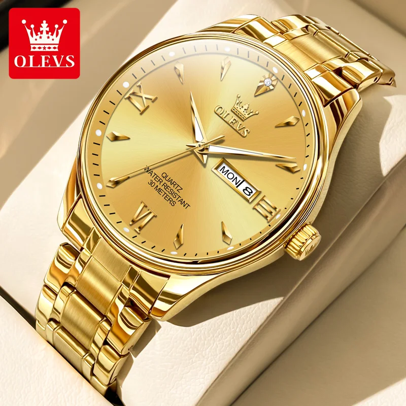 OLEVS 9806 montres classiques pour hommes échelle romaine Date semaine en acier inoxydable af...