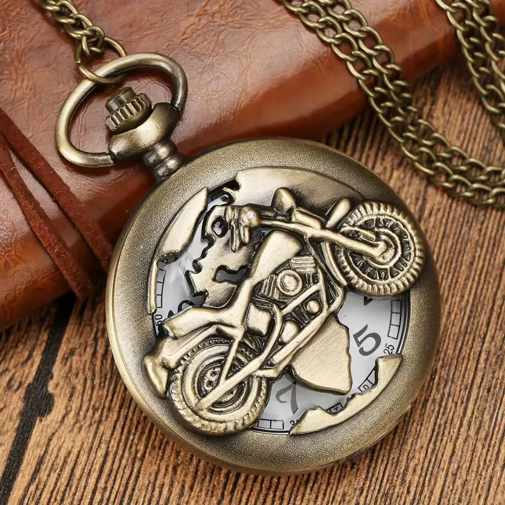 Vintage métal Art moto Steampunk collier chaîne Fob horloge moto montre de poche pour h...