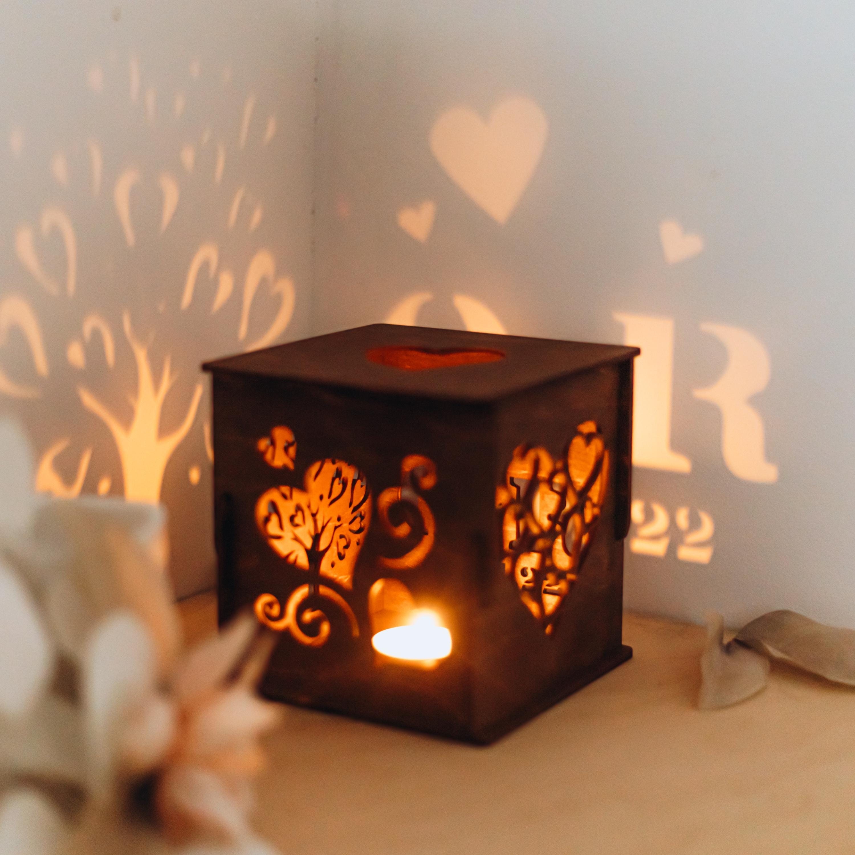 COFFRET BOUGIE PERSONNALISÉ Cadeau romantique pour elle et lui. Ce bougeoir romantique avec g...