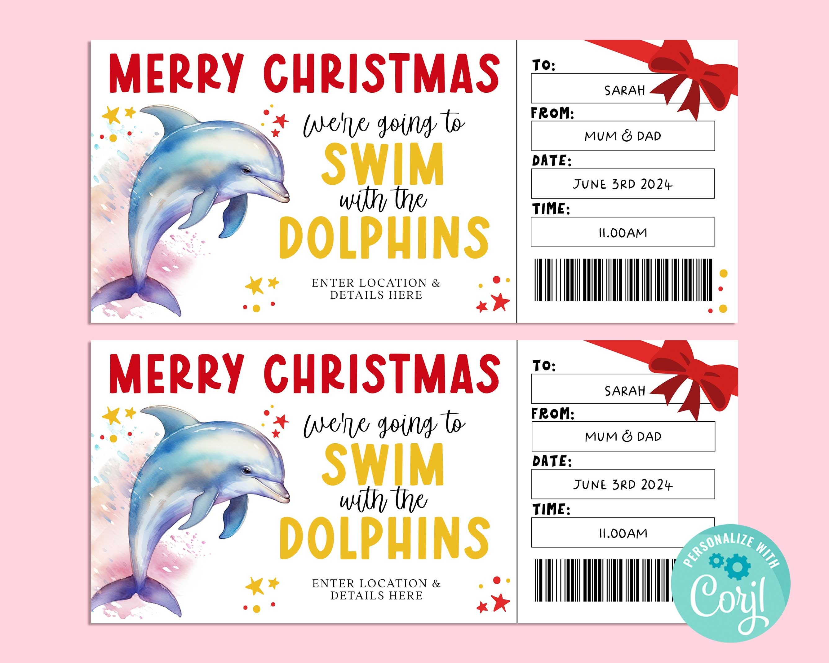 Joyeux Noël billet cadeau DAUPHIN Swim, carte-cadeau virtuelle...