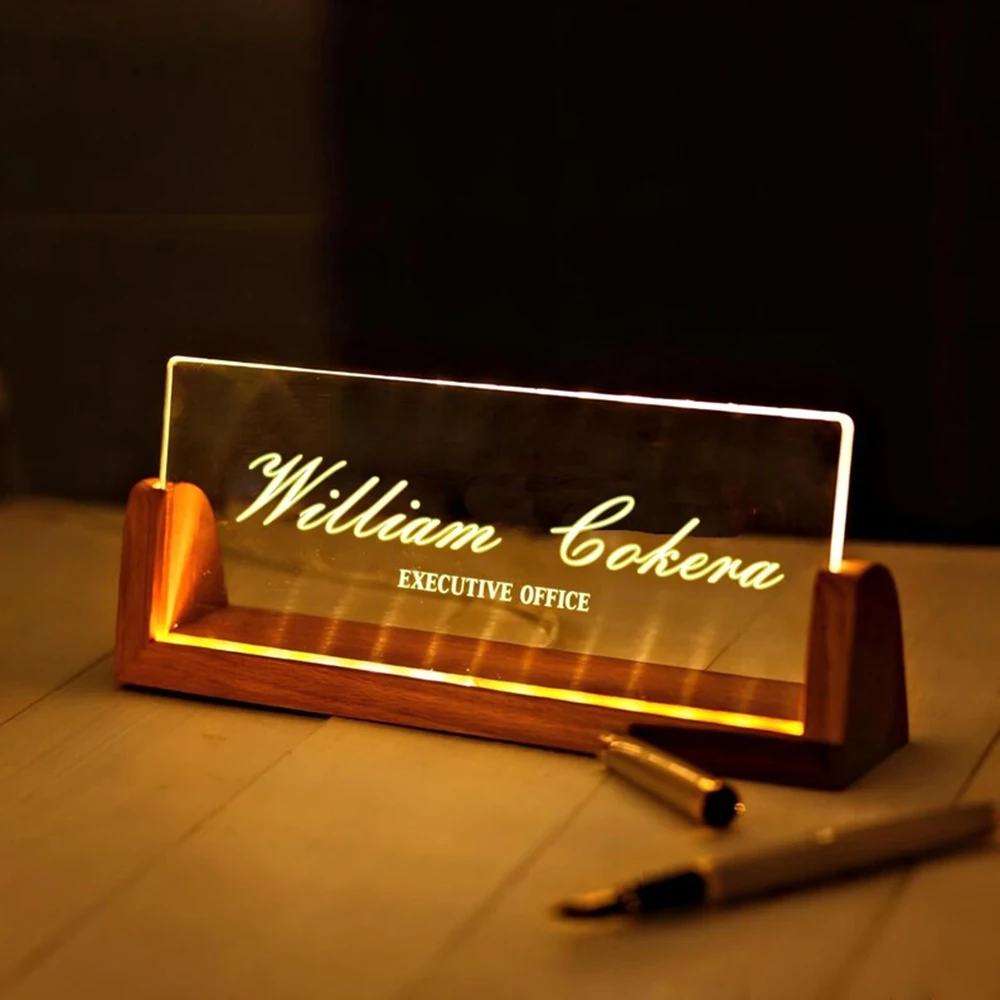 Plaque de nom en acrylique personnalisée avec LED, plaque de...