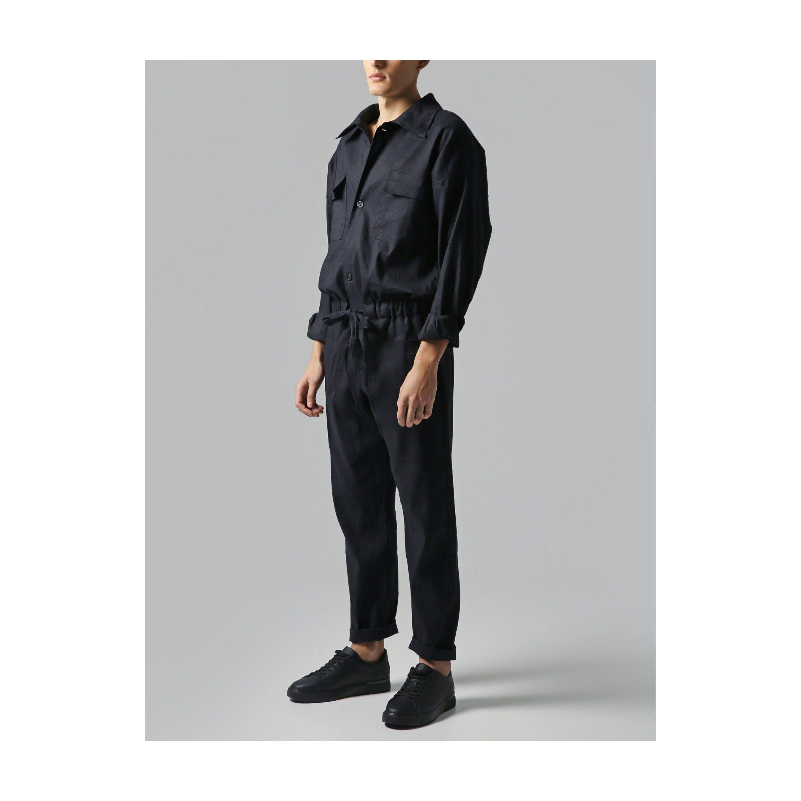 Salopette de combinaison coupe ample en lin pour hommes | Combinais...