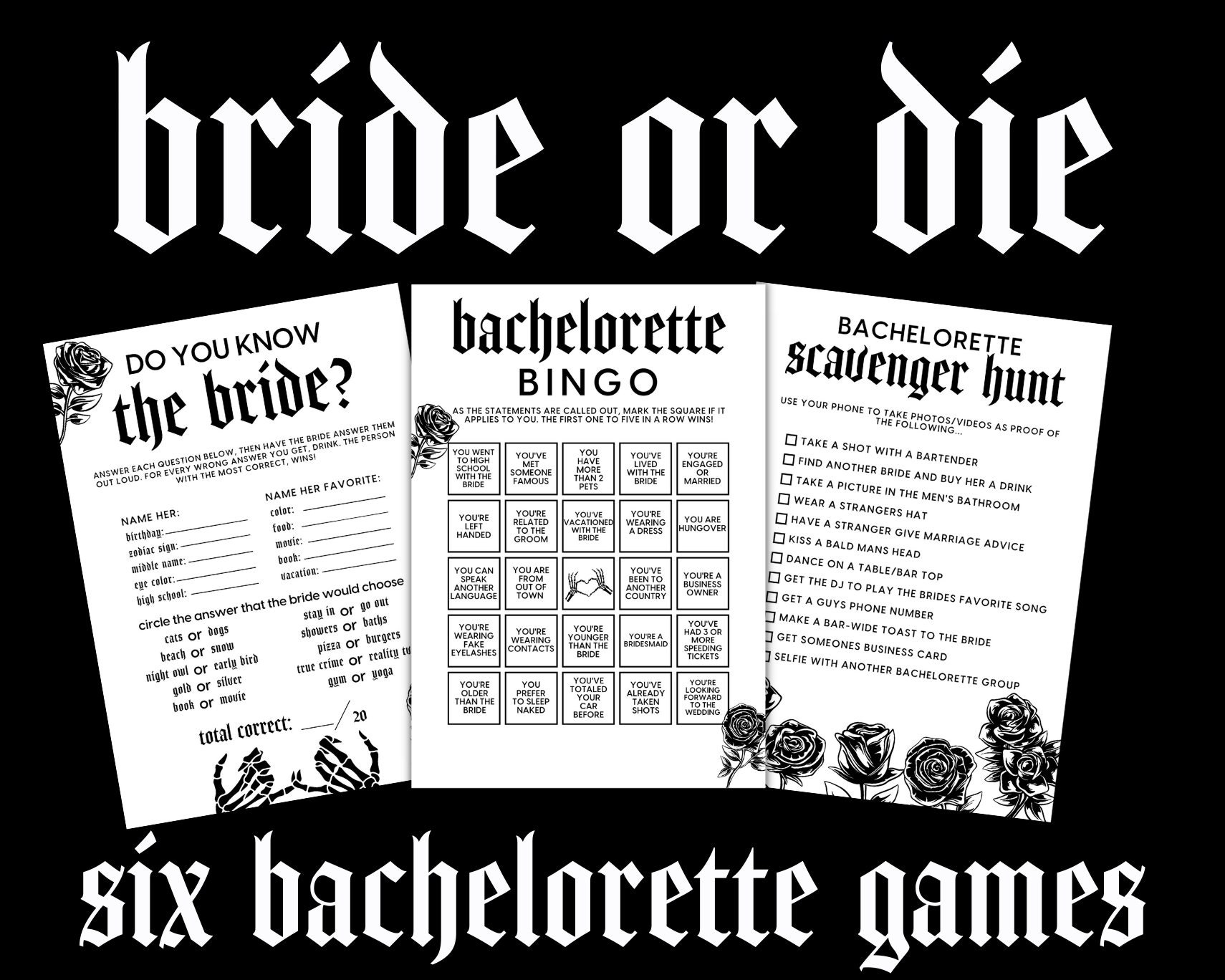 Bride or Die Bachelorette Games, Till Death Do Us Party Bachelorett...