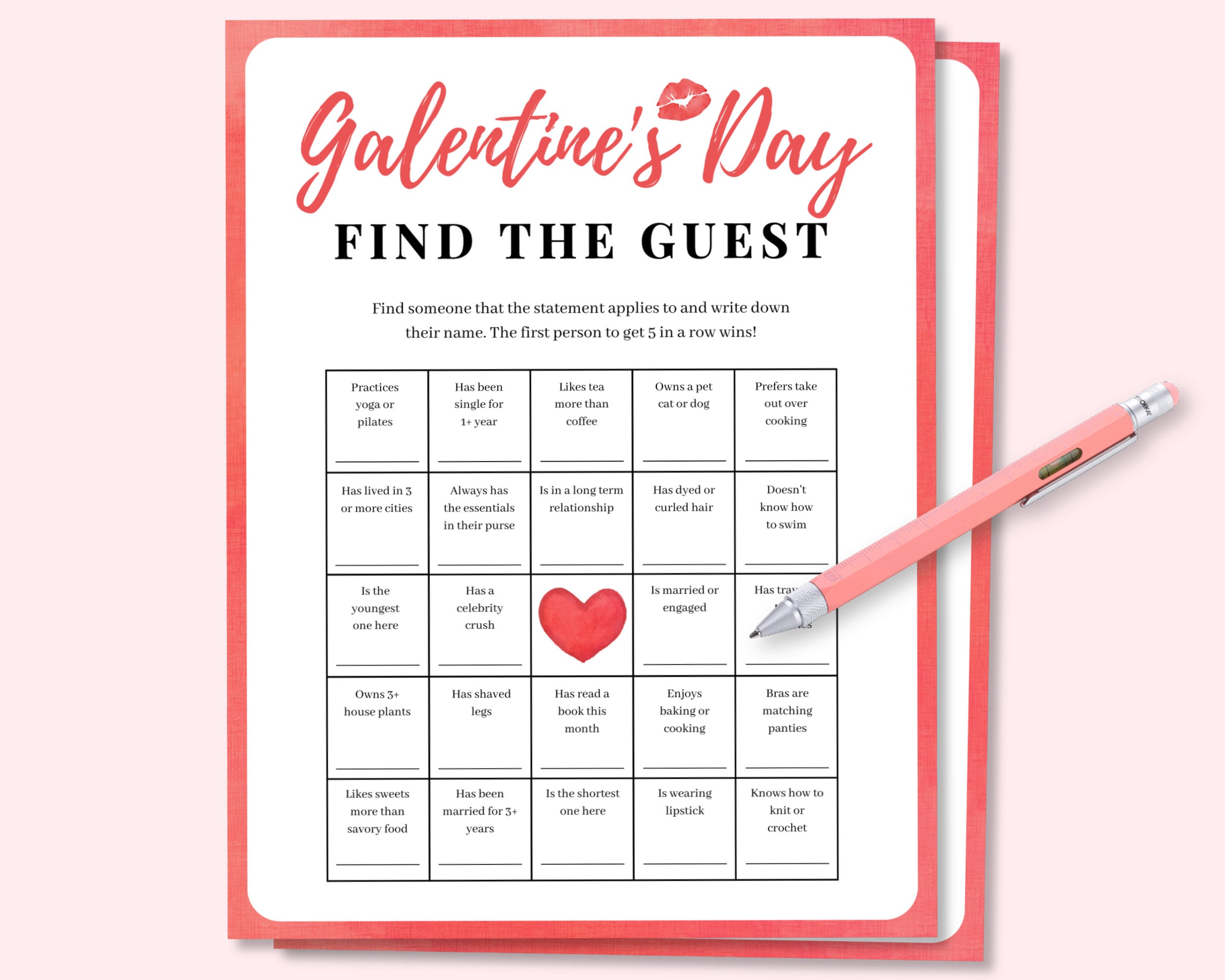 Galentines Day Find The Guest Bingo Game, Galentines Day Bingo, Gal...
