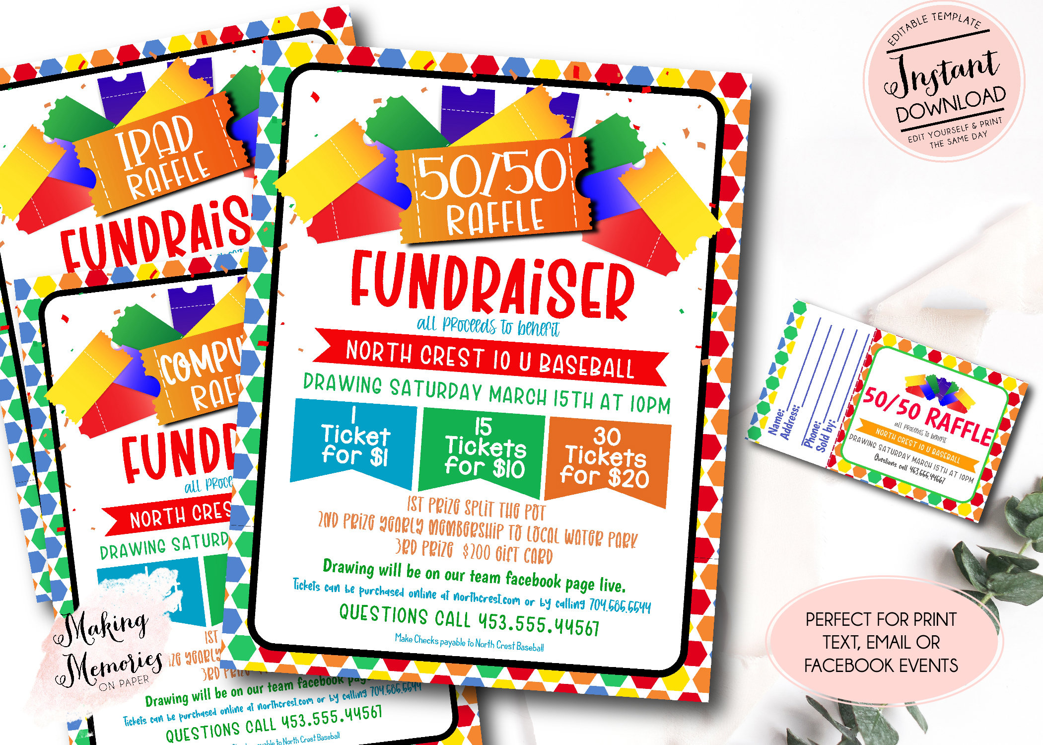 Billets de tombola imprimables, Participez pour gagner des billets,...