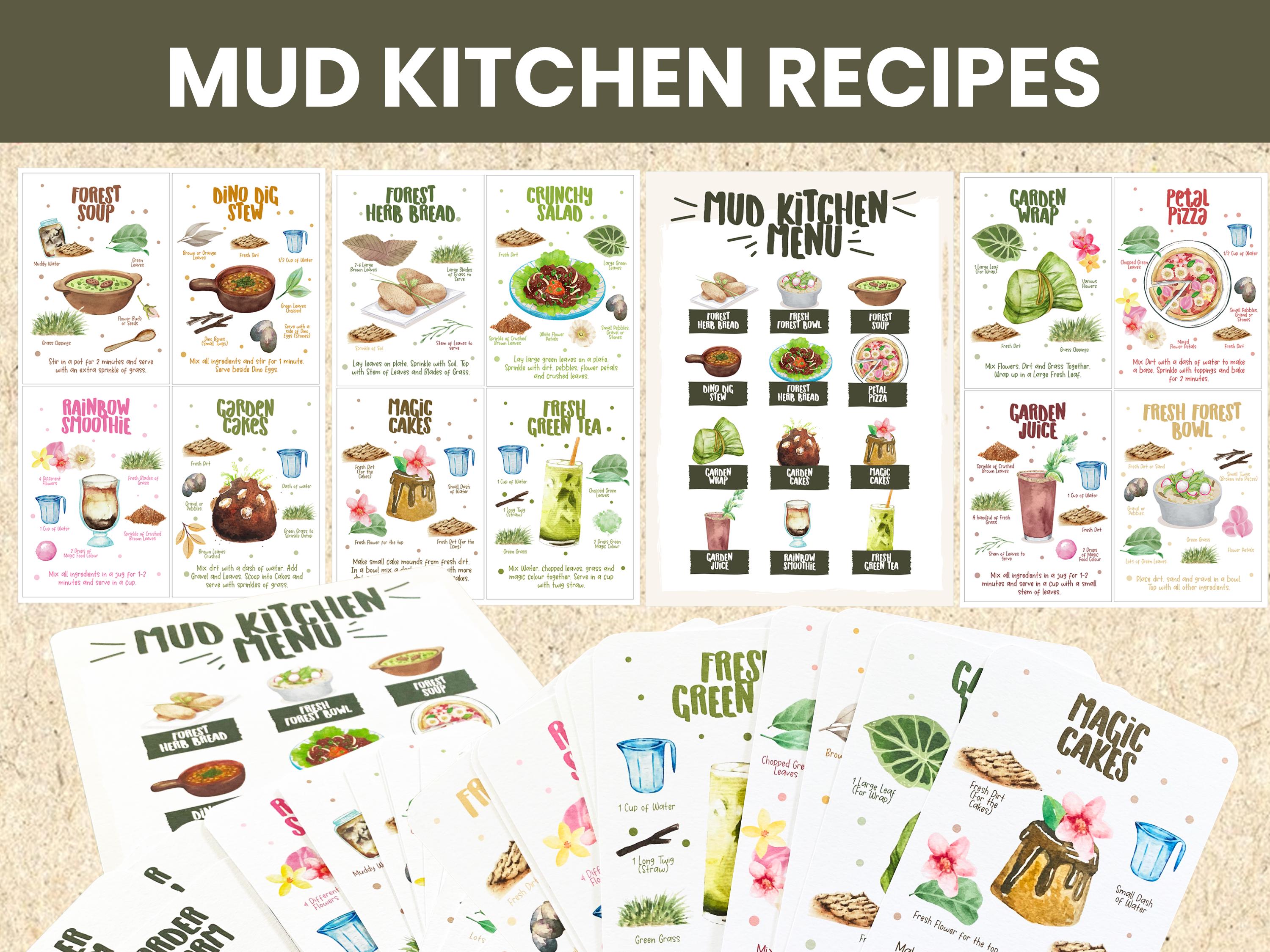 Cartes de recettes de cuisine de boue - Jeu imaginatif (12 recettes + menu + cartes de commande) Lai...