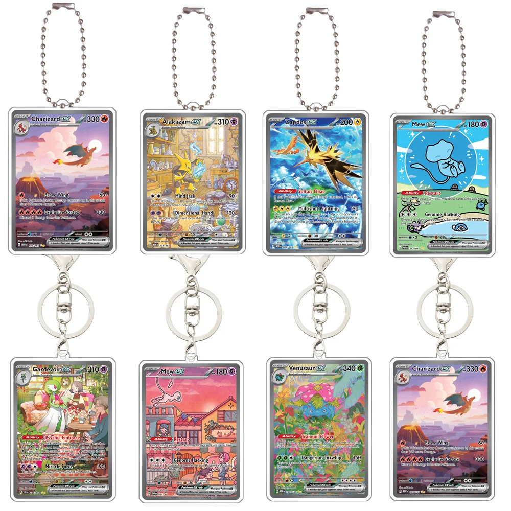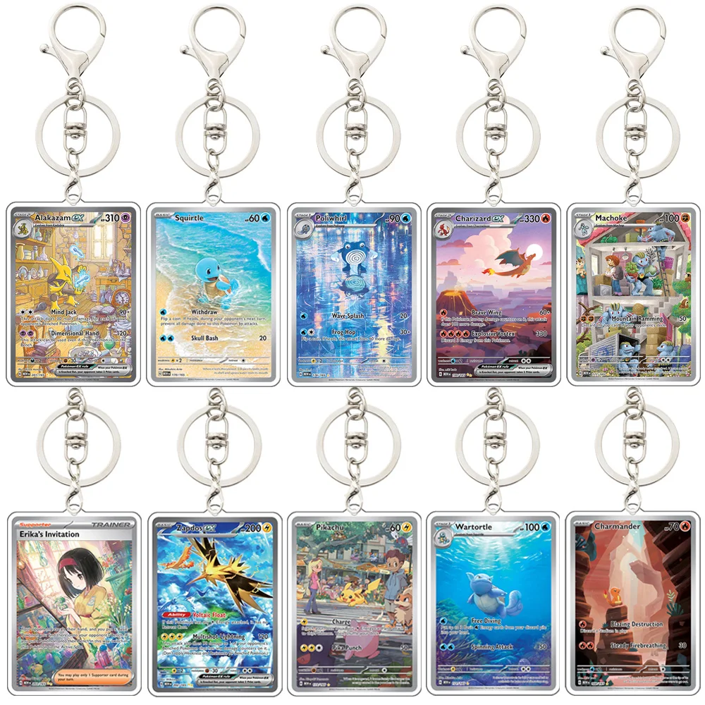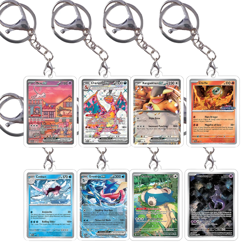 Porte-clés Pokemon Mewtwo Mew Greninja Kangaskhan Charizard, petites cartes en acrylique, jeu...