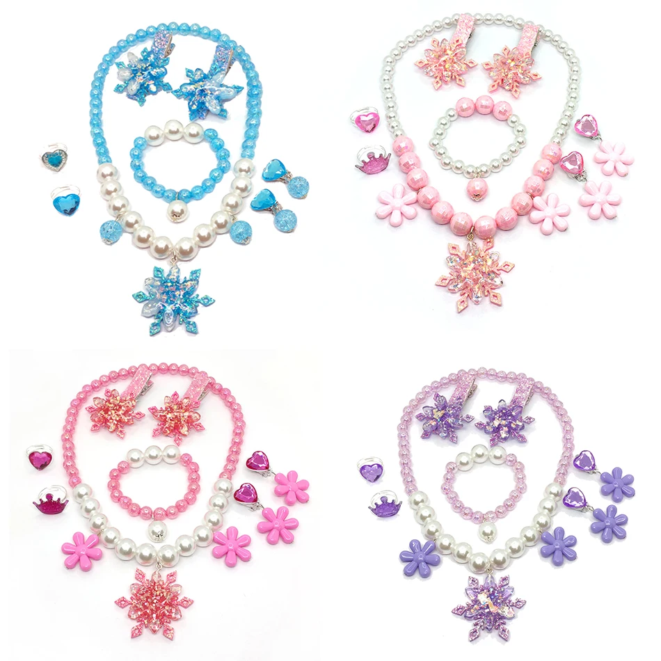 Enfants flocon de neige Elsa habiller bijoux pour filles rose rosé bleu violet collier Bracel...