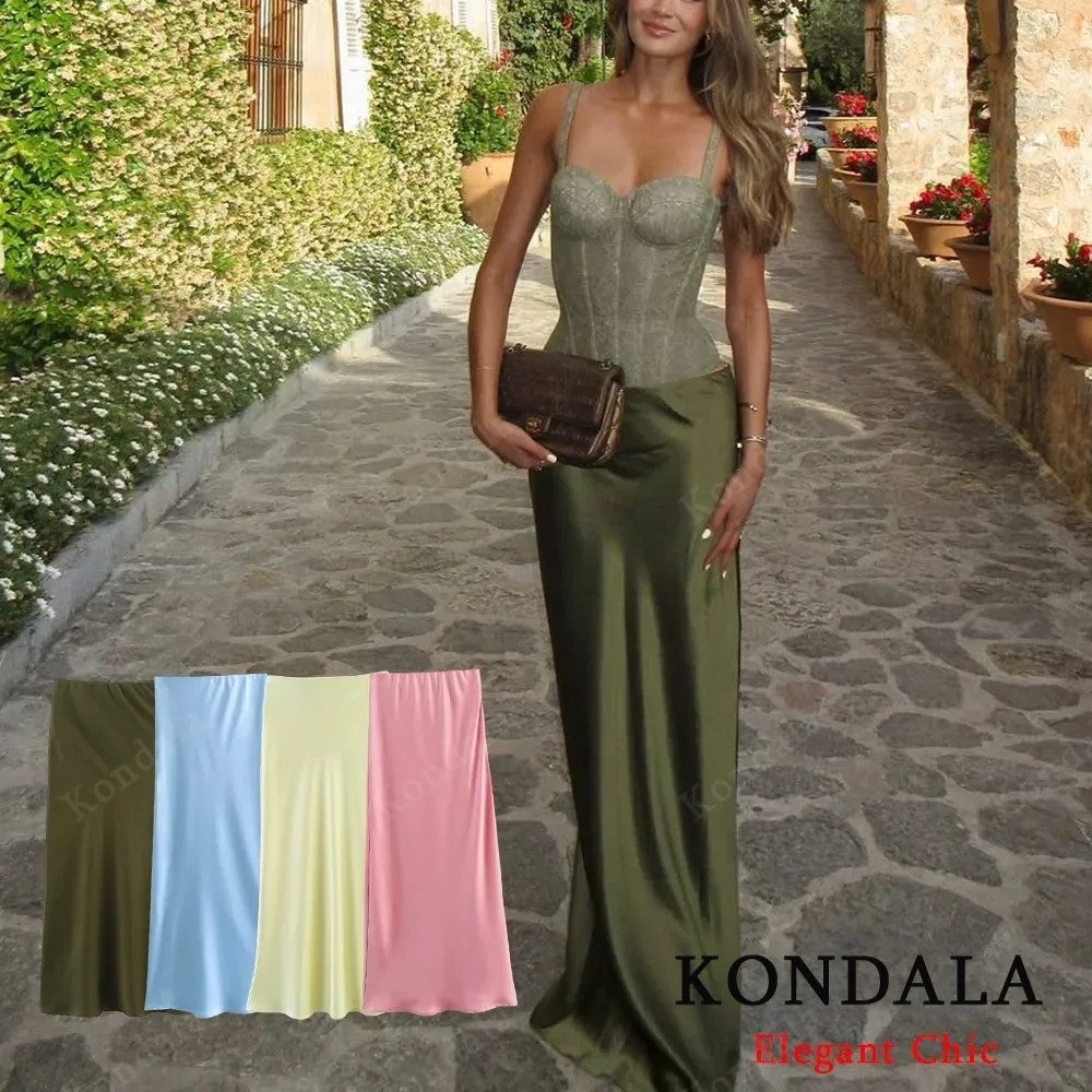 KONDALA Vintage Chic vert jaune Satin jupes taille élastique jupes longues droites mode 2025 ...