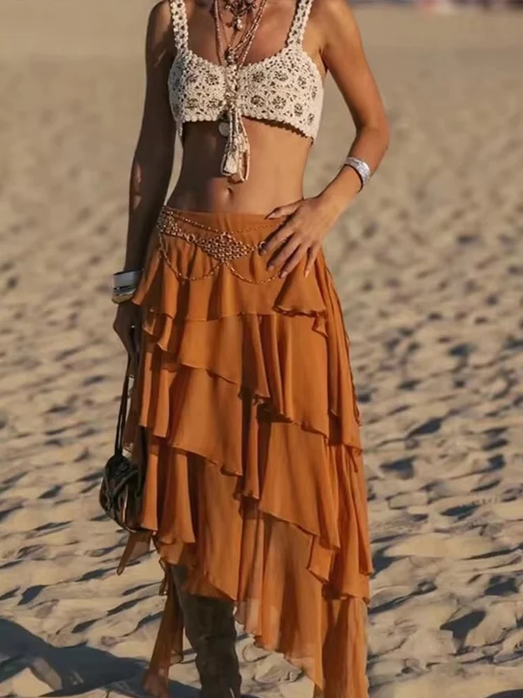Chic élégant volants jupes longues pour les femmes mode 2025 nouveau asymétriqu...