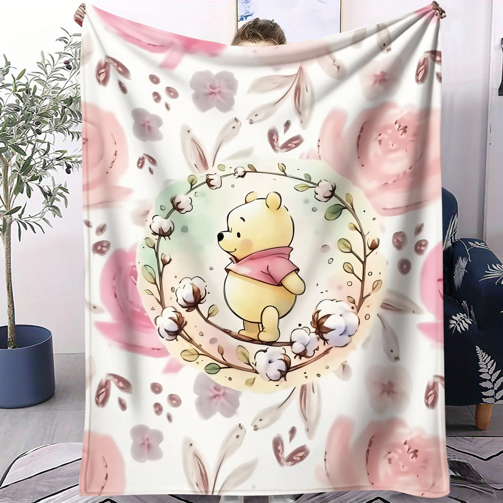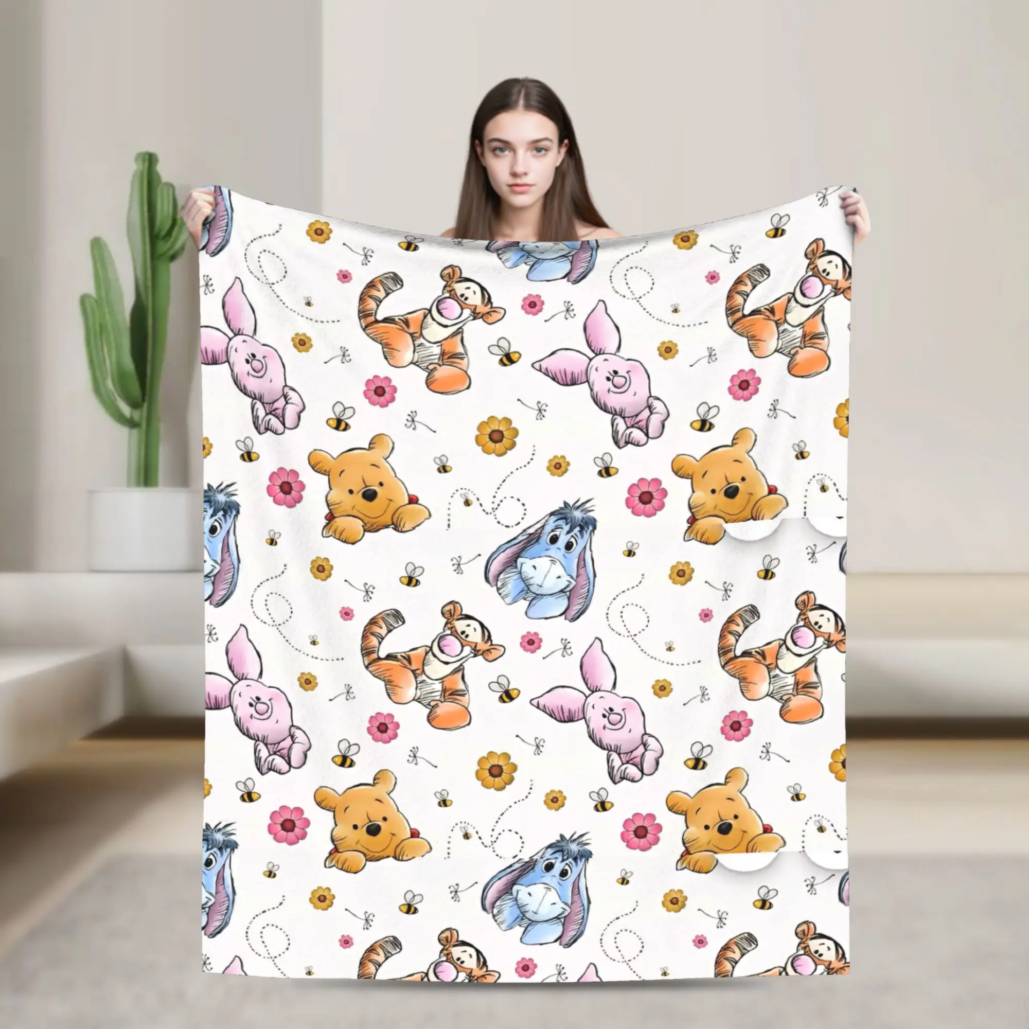 Couverture en flanelle douce Winnie l'ourson, couverture chaude et confortable pour pique-nique, lit...