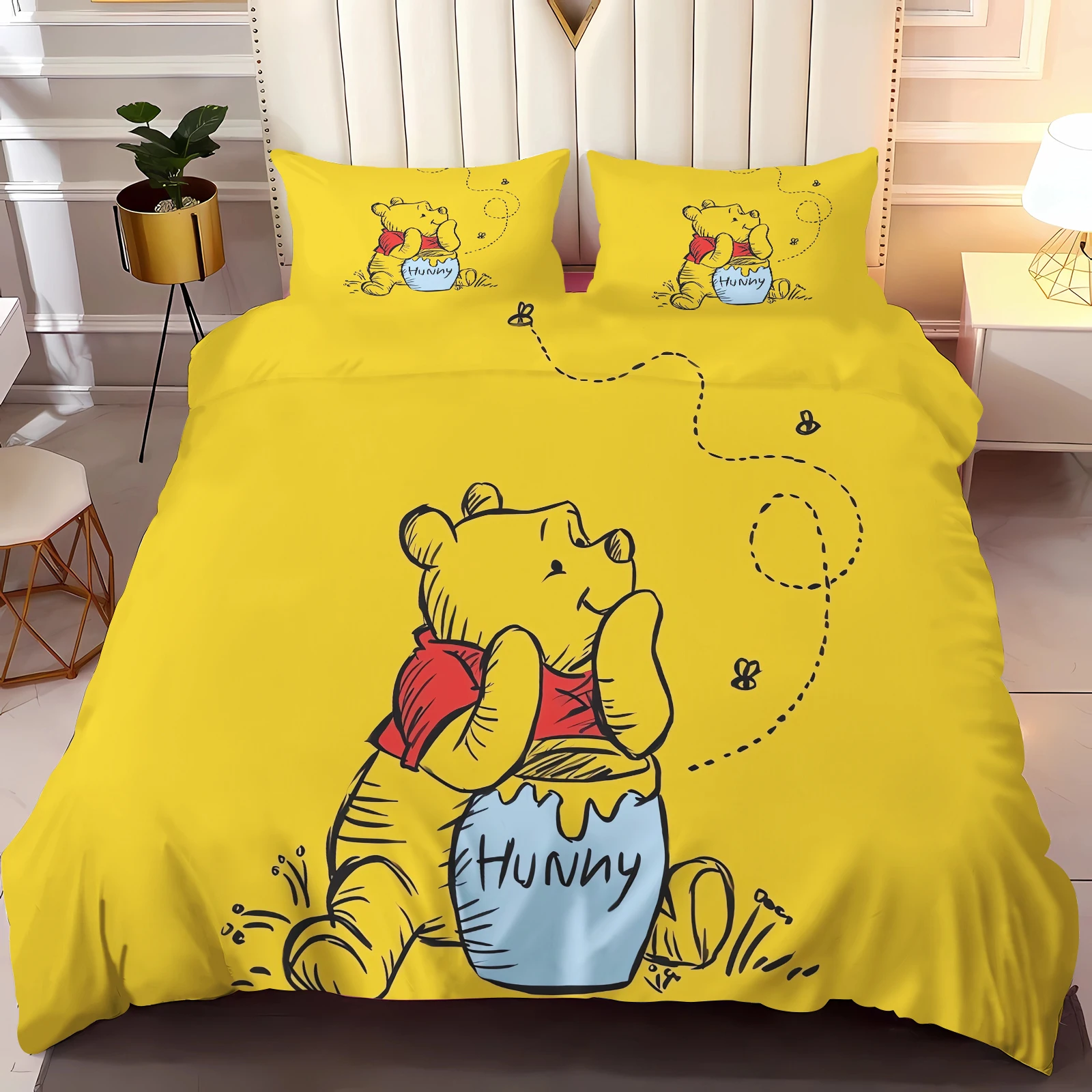 Housse de couette imprimée en 3D Disney Winnie, draps de lit...