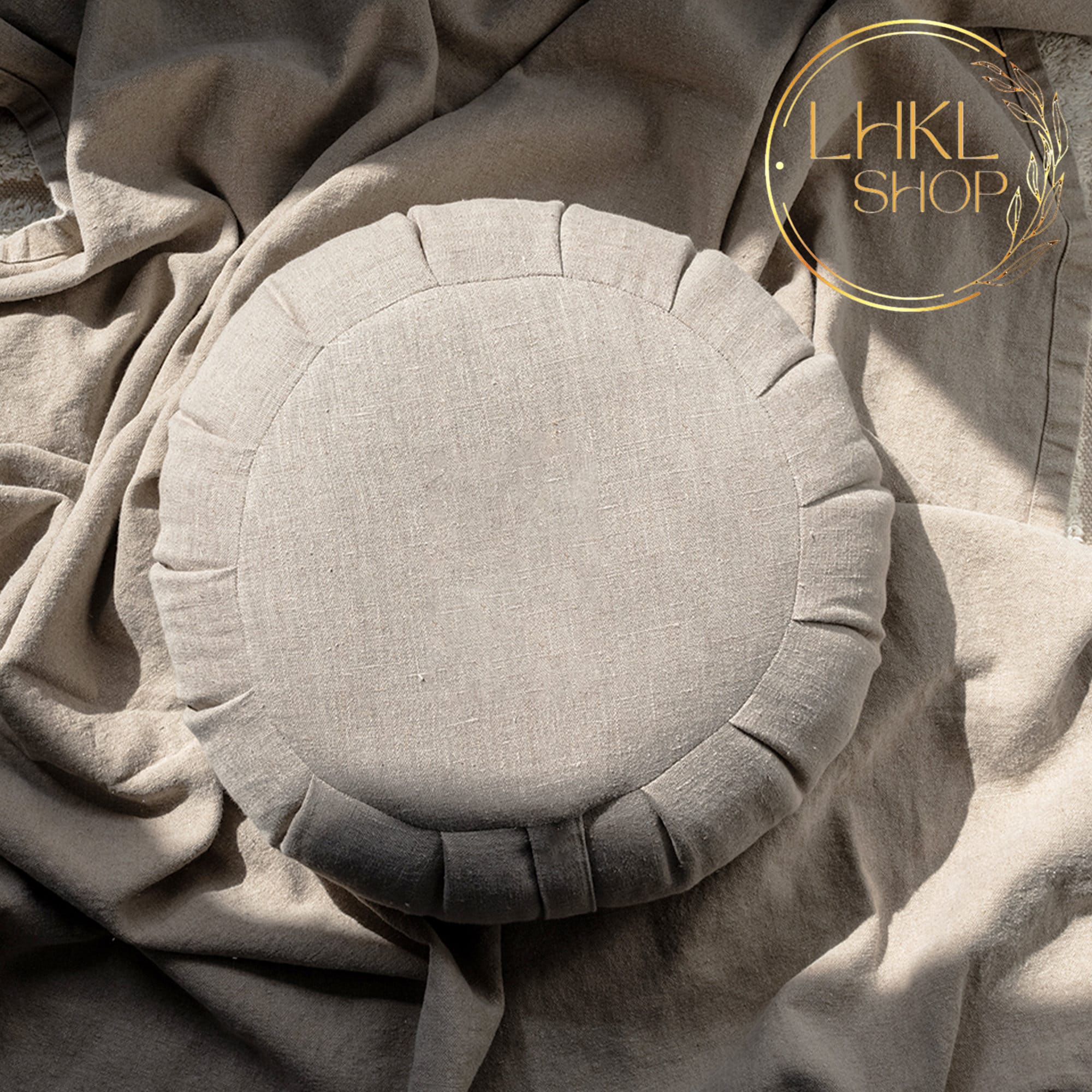 Taie d'oreiller ronde en lin pour la méditation, Taie d'orei...