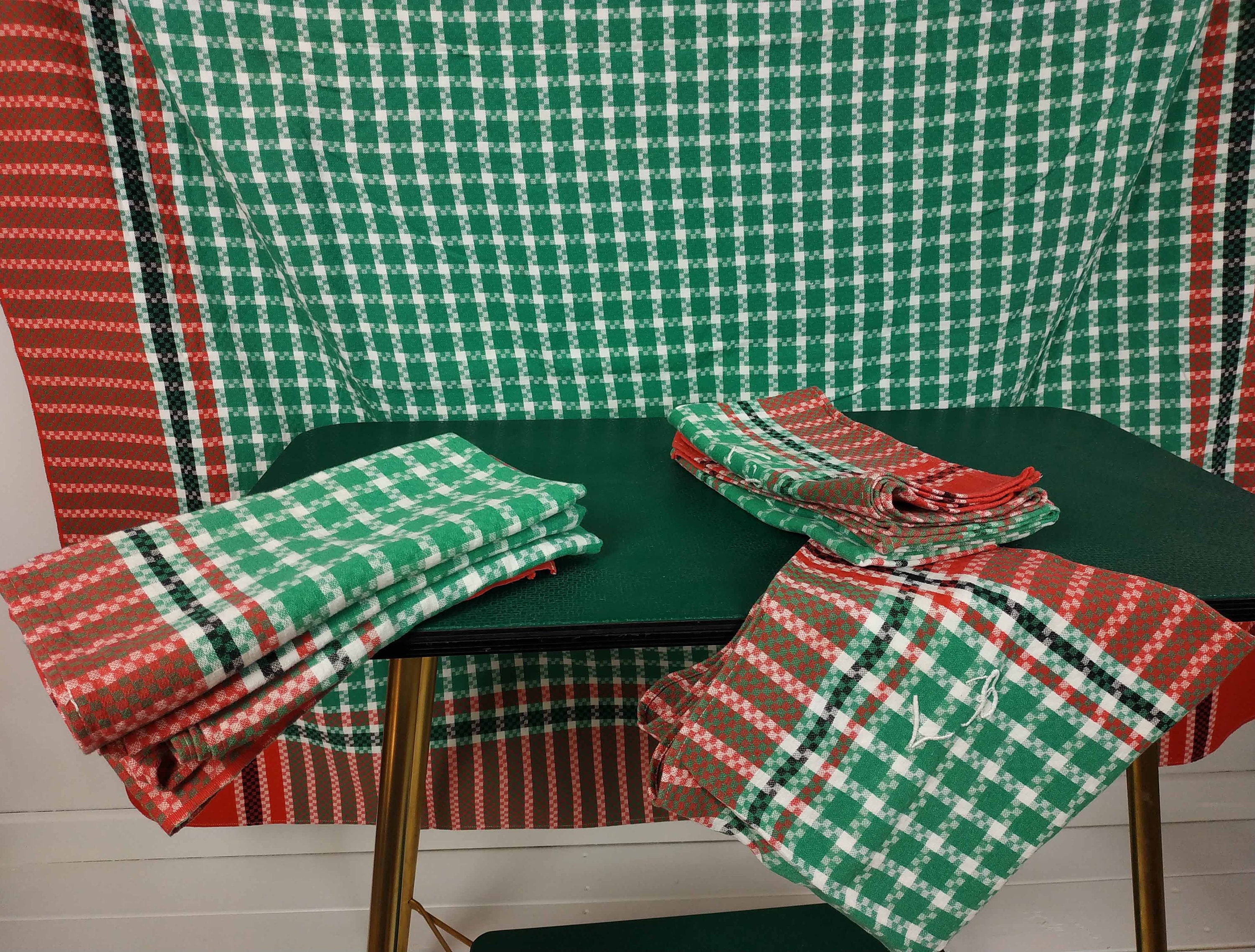 "Je vous propose un magnifique ensemble de linge de table en pur style basque, datant des ann&e...