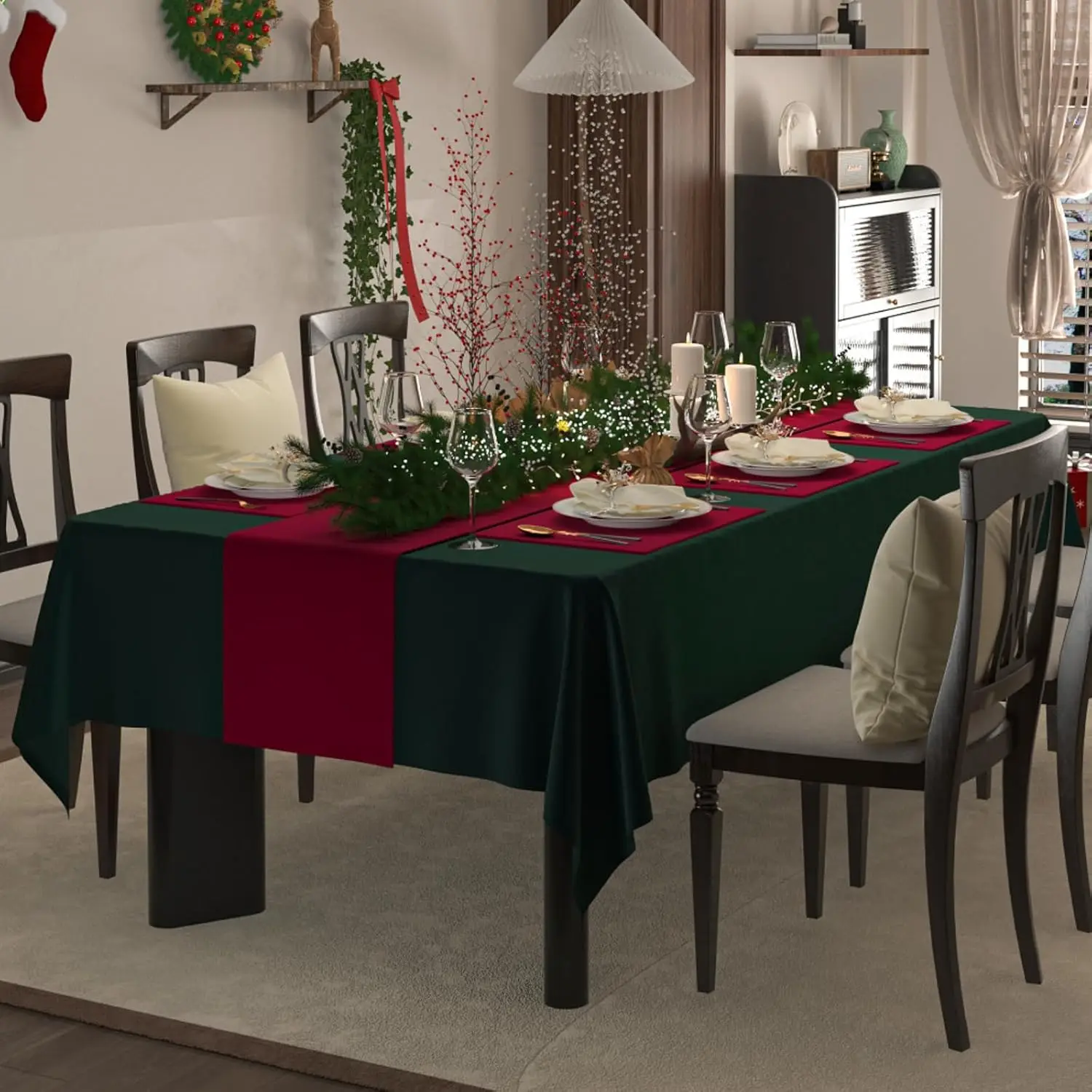 Nappe de Noël vert chasseur, nappe rectangulaire lavable imperméable et anti-déve...