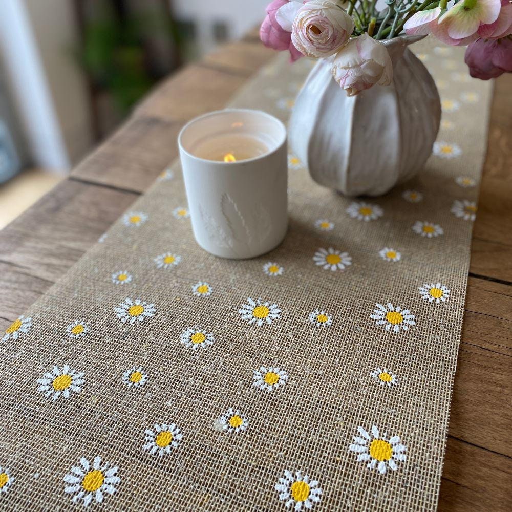 Chemin de table de fête Daisy en toile de jute, chemin de tab...