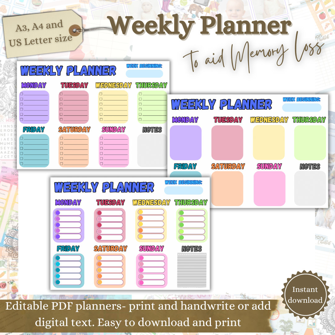 Agenda perte de mémoire, Agenda hebdomadaire, Aide aux perso...