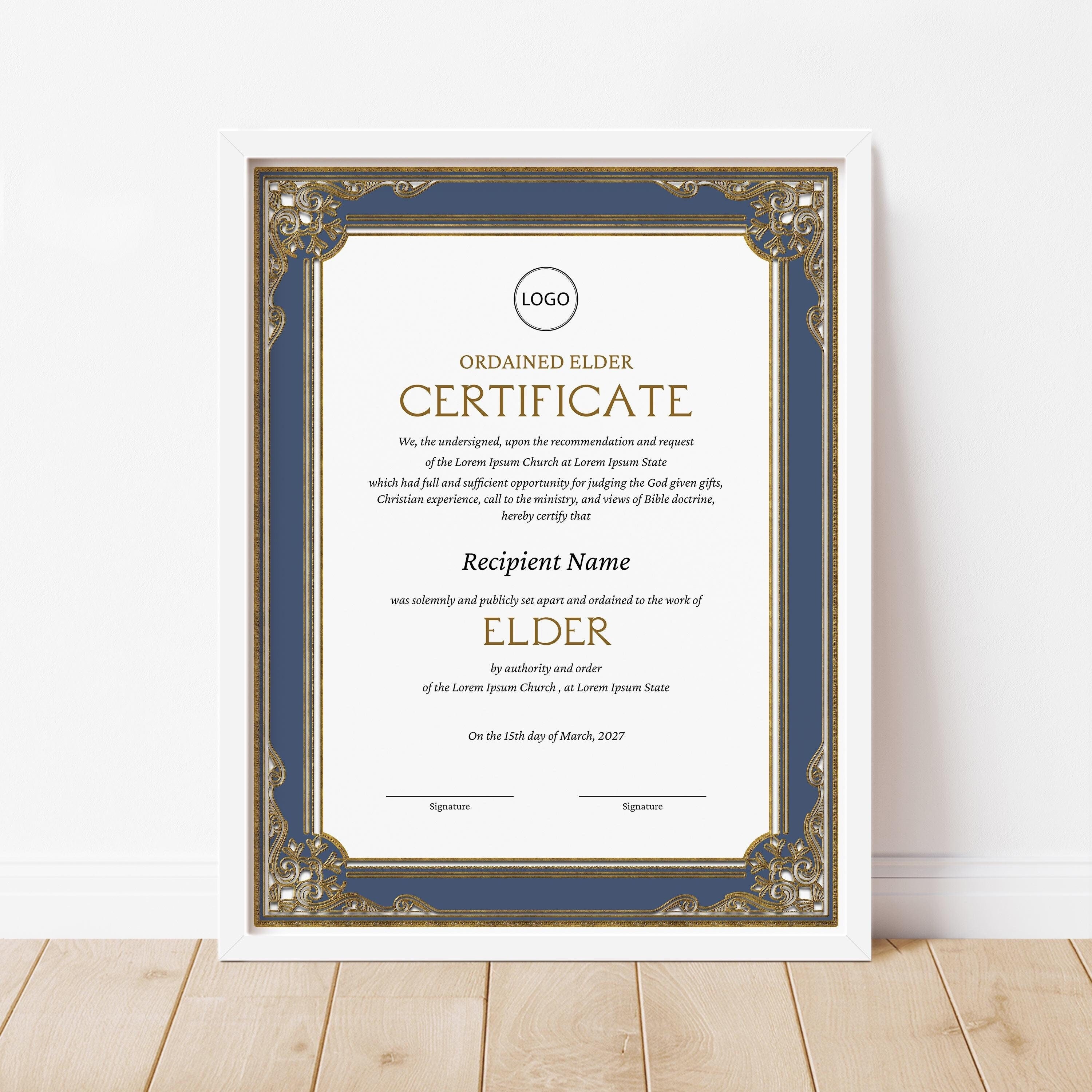 Modèle de certificat d'ancien ordonné ordonné modifiable, certificat d'ordinati...