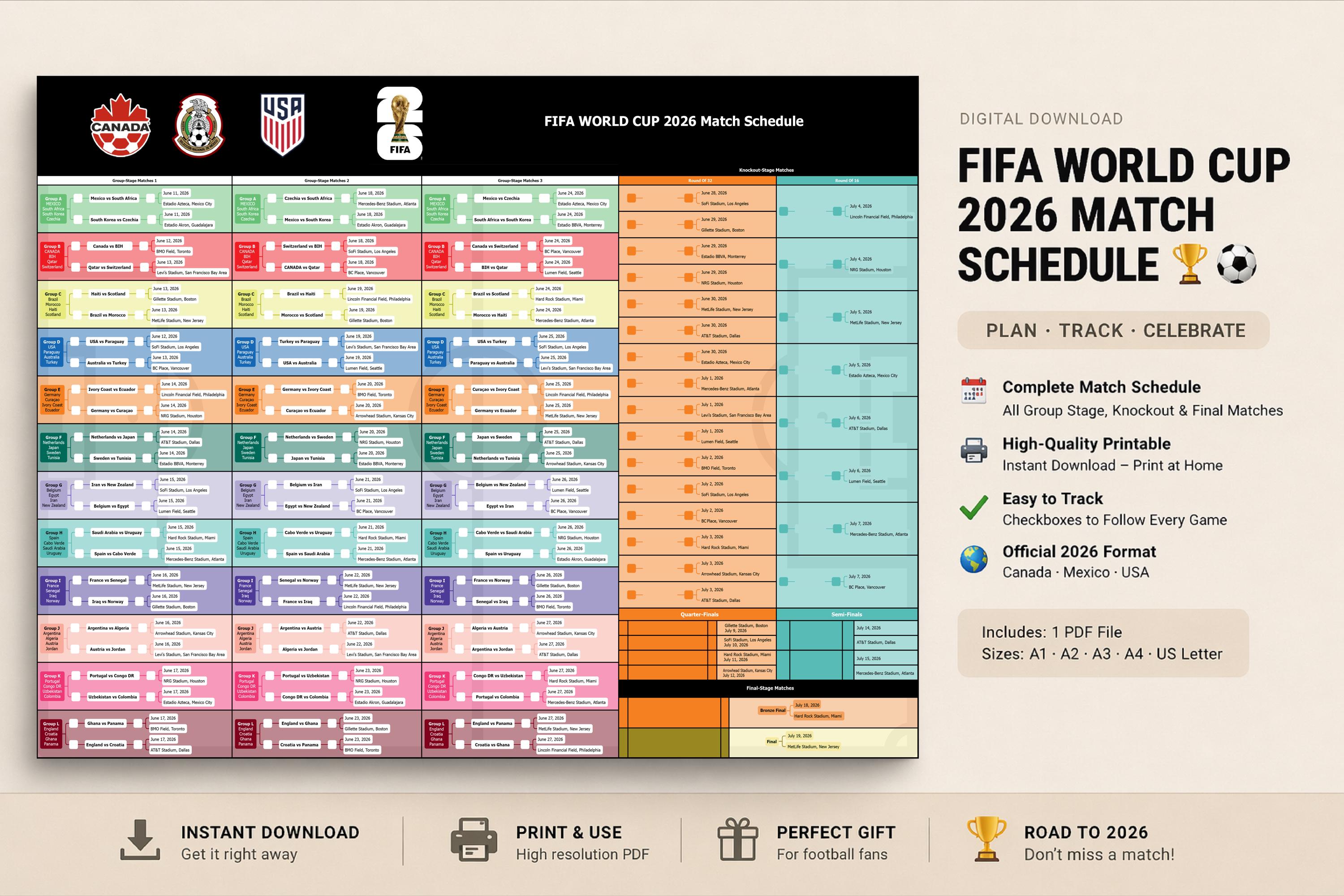 Calendrier de la Coupe du monde 2026, supports imprimables du tourn...