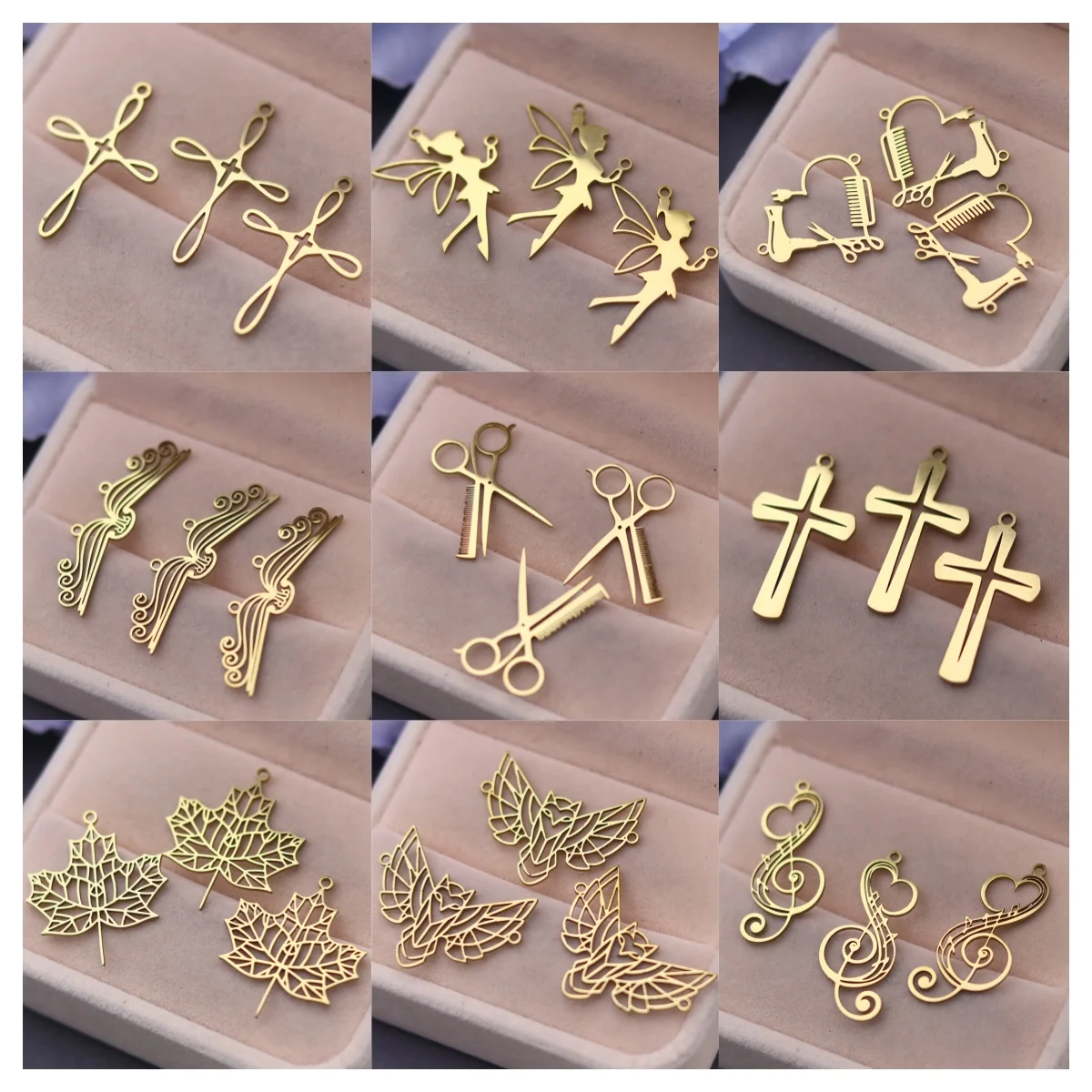3 pièces Vintage Note de musique elfe feuille d'érable en acier inoxydable croix livre...