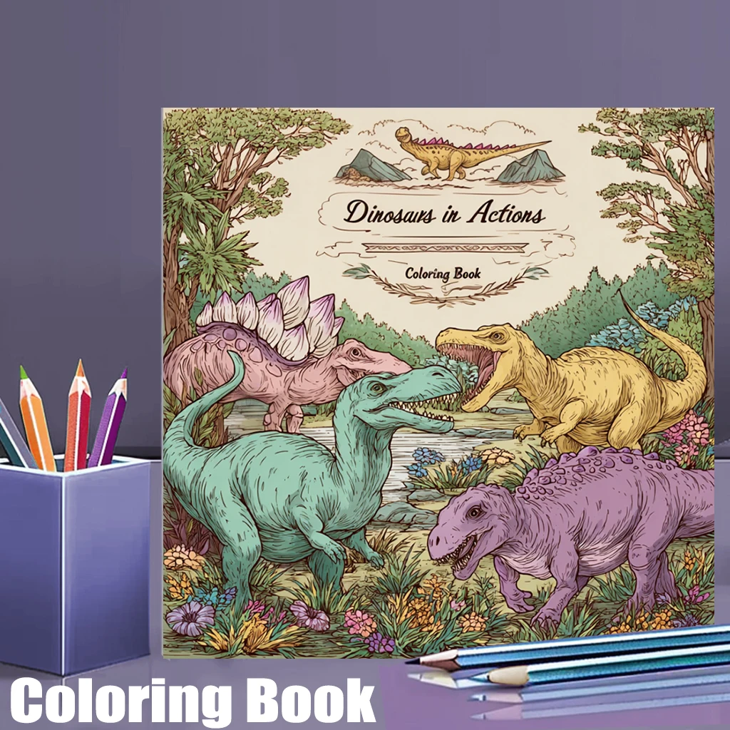 28 pages de dinosaures originaux en livre de coloriage d'action pour adulte | Livre de coloriage, fo...