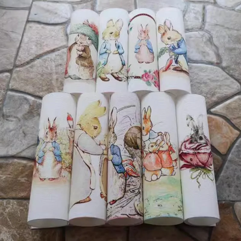 Tissu en toile de coton teint à la main, famille de lapins de dessin animé, bricolage,...
