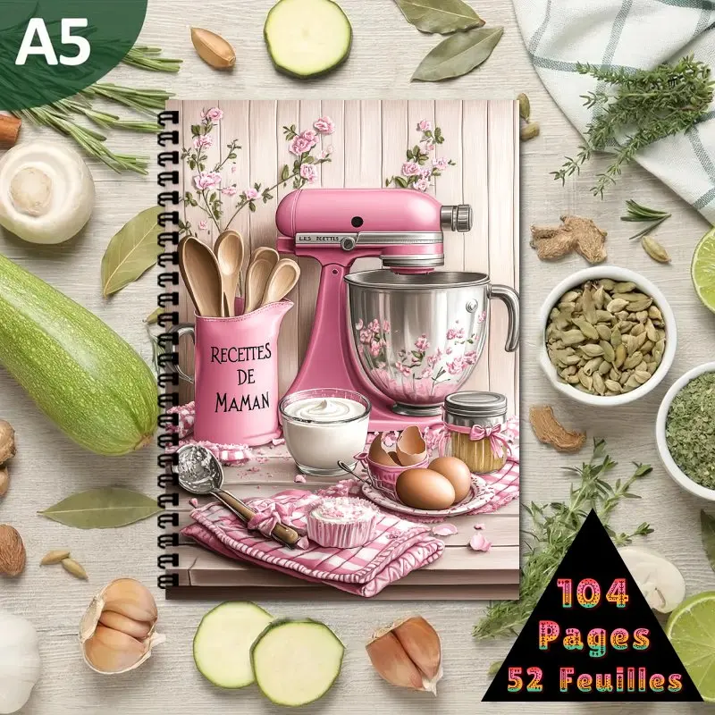 Livre de recettes français, carnet de notes à spirale...
