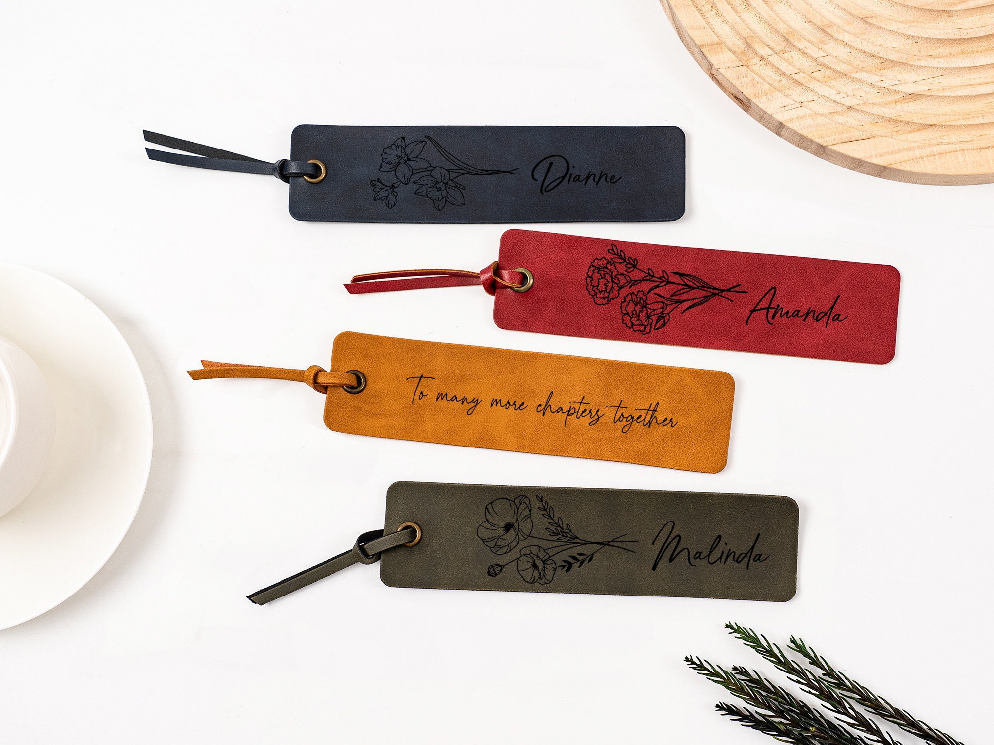 Personalized Leather Bookmark, Custom Name Bookmark with Birth Mont...