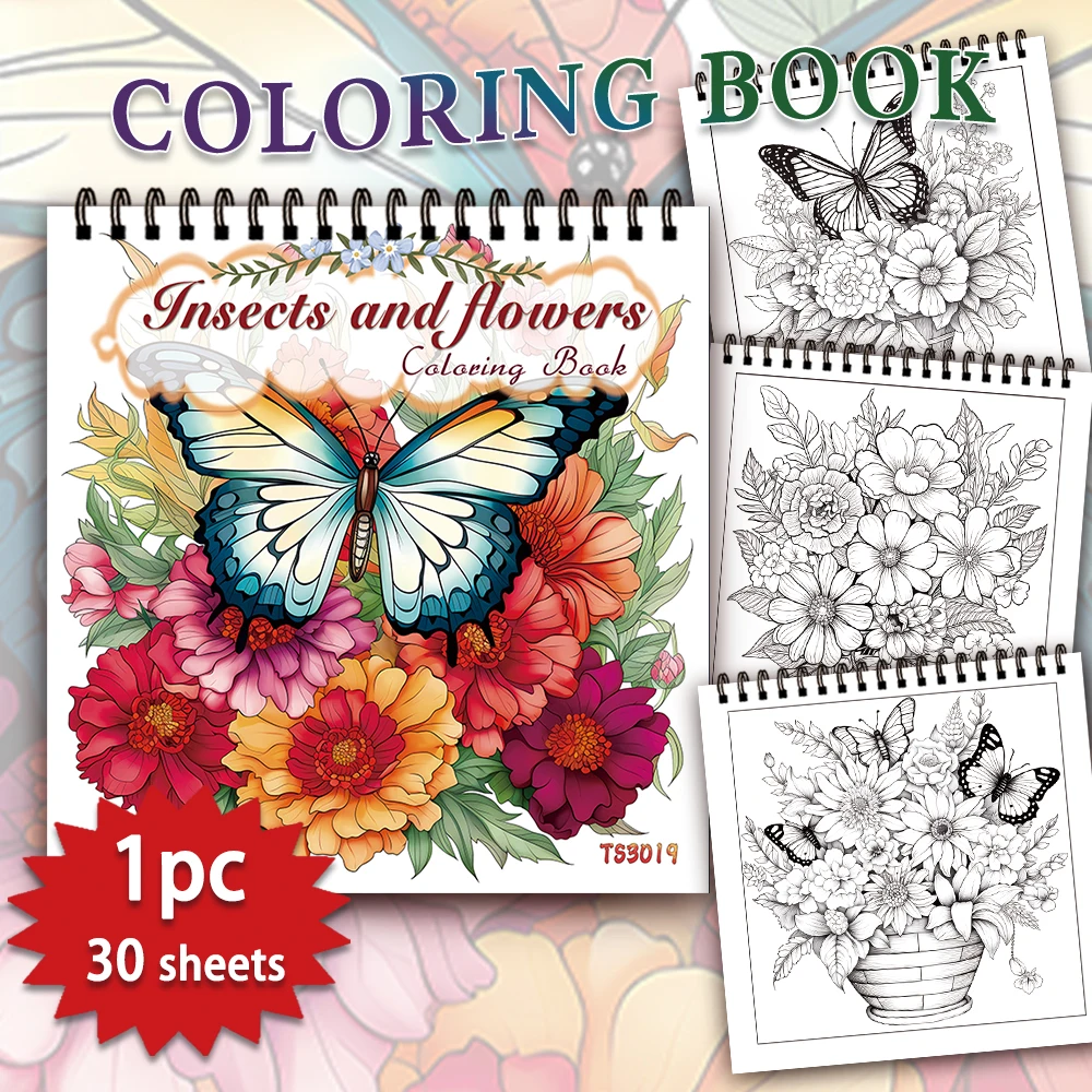 Livre de coloriage pour adultes-30 feuilles livre de coloriage en spirale pour femmes, 8.3x8.3 pouce...