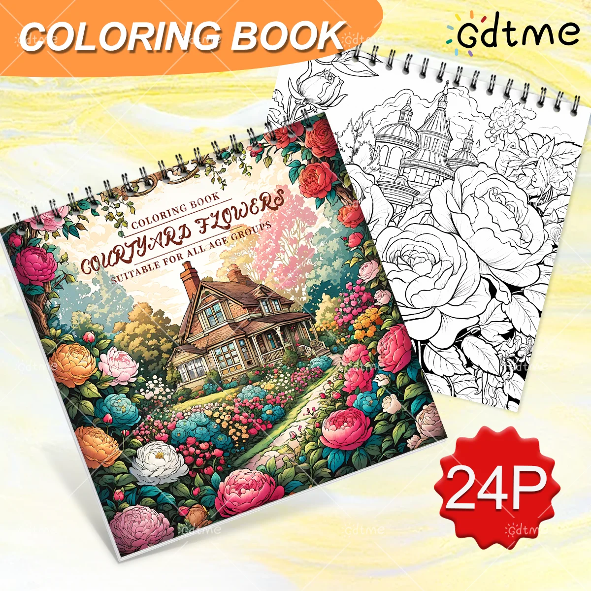 Livre de coloriage de fleurs de jardin pour adultes, avec reliure en spirale, 24 pages pour la Relax...