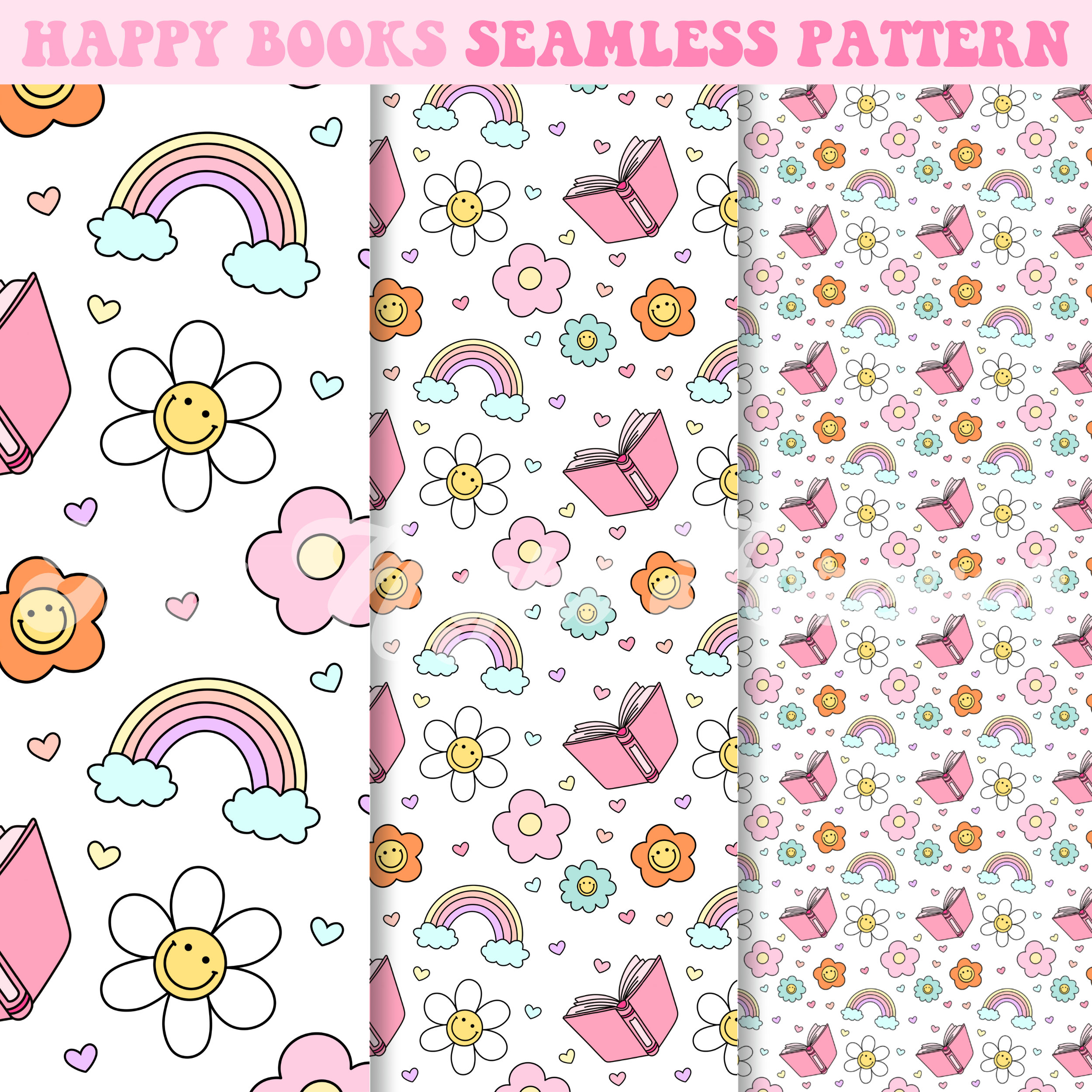Modèle Happy Books, Happy Pattern sans couture, Seamless Png...