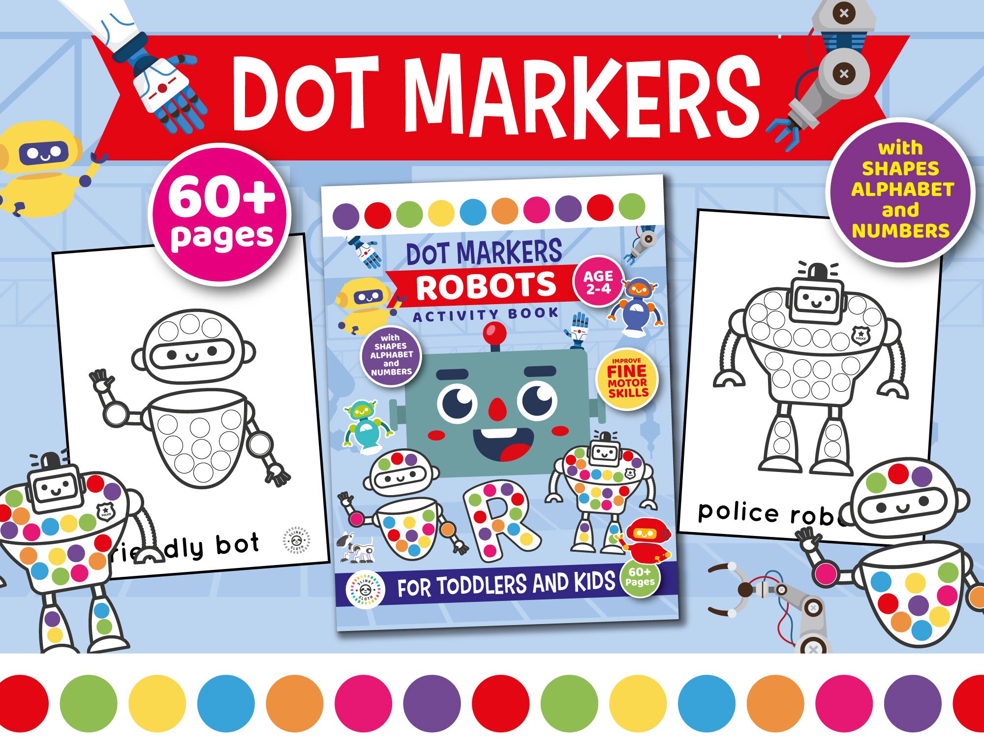 Dot Markers Coloring Pages, Robot Dot Markers Activity Book, Digita...