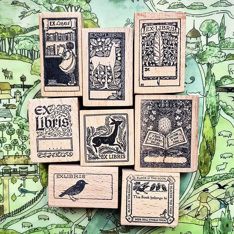 Tampon Ex-libris Amoureux des livres Oiseau Cerf Fille Tampons en b...