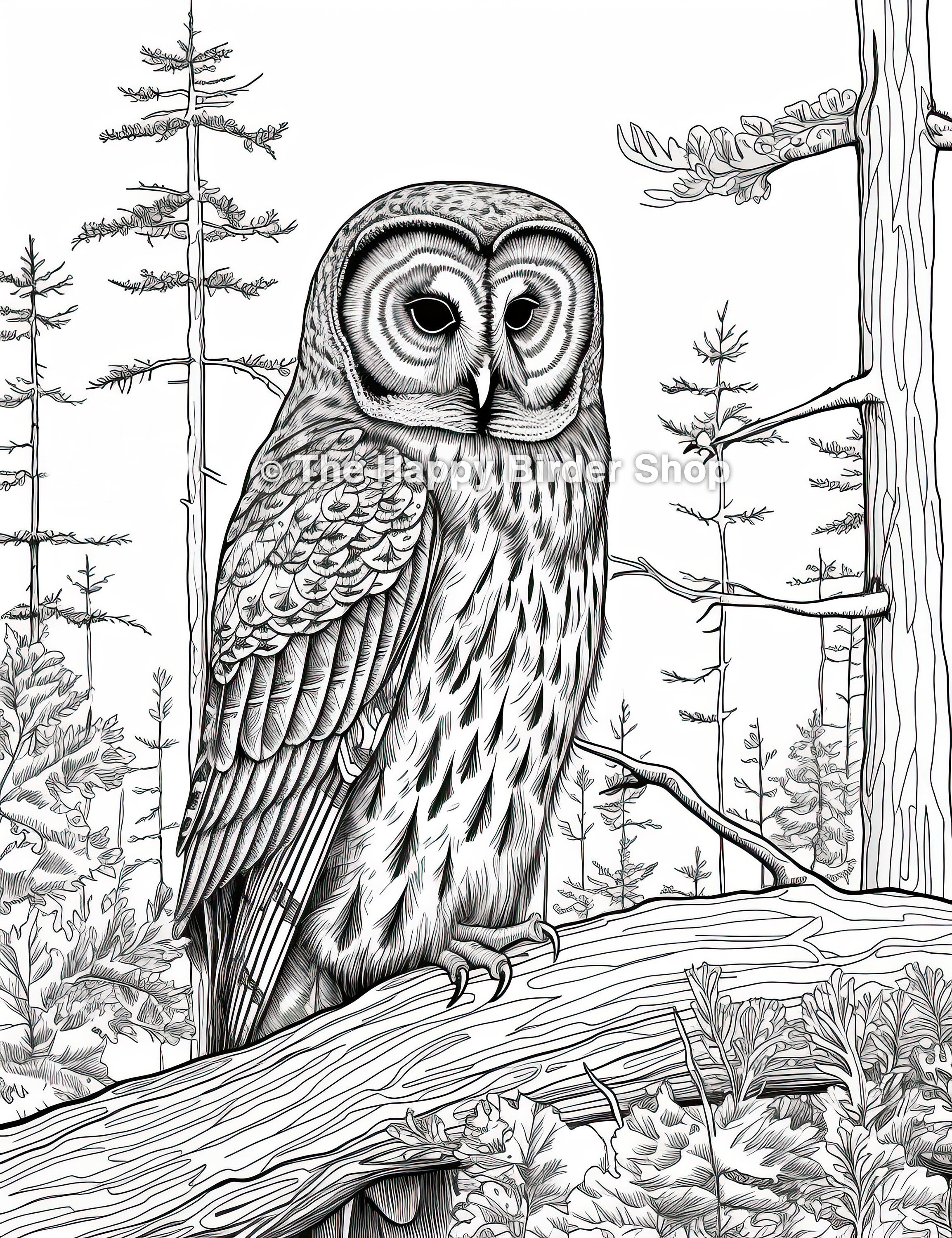 Page de livre de coloriage de chouette lapone, oiseaux, nerd d'oise...