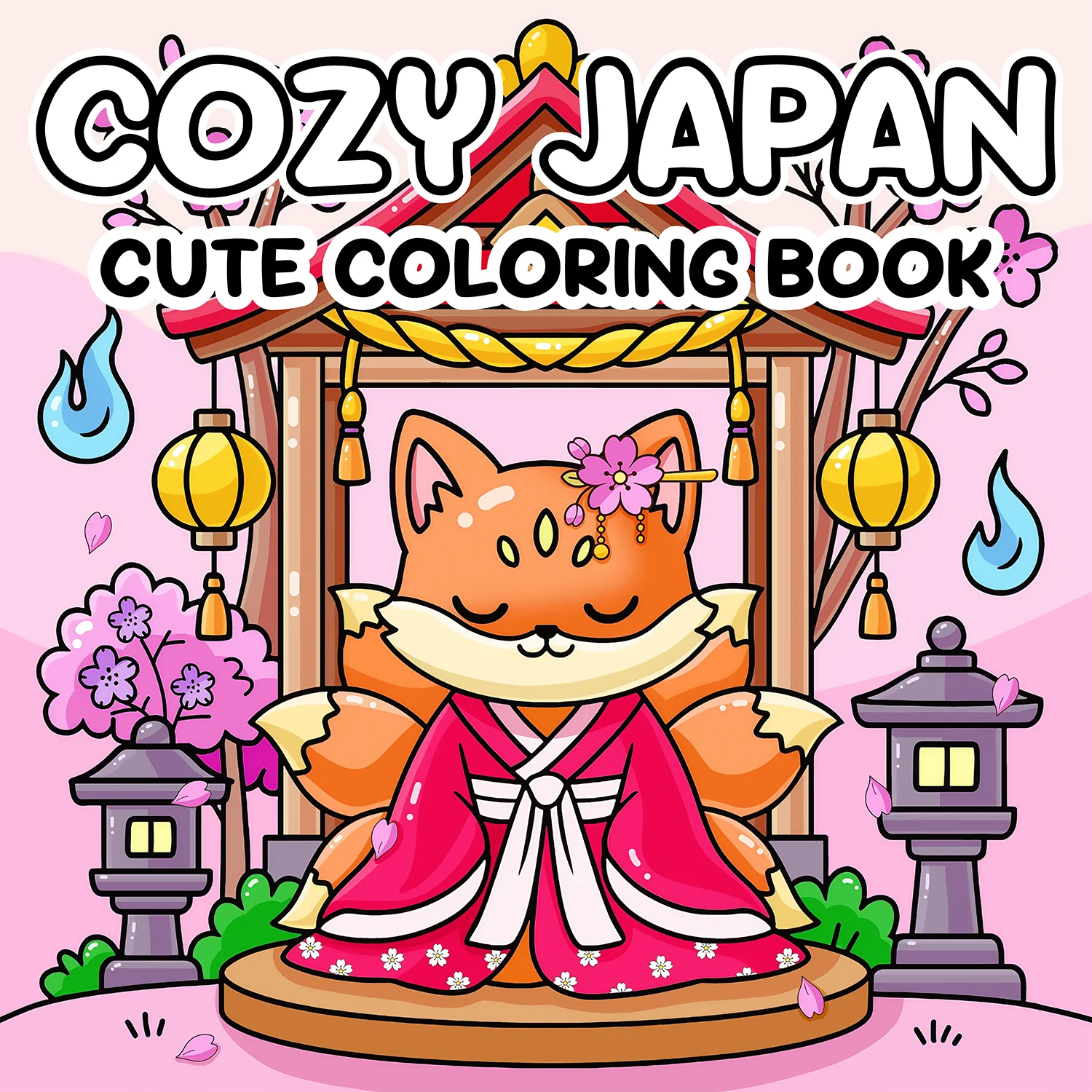 Livre de coloriage japonais confortable, motifs à thème japonais mignons et confortabl...