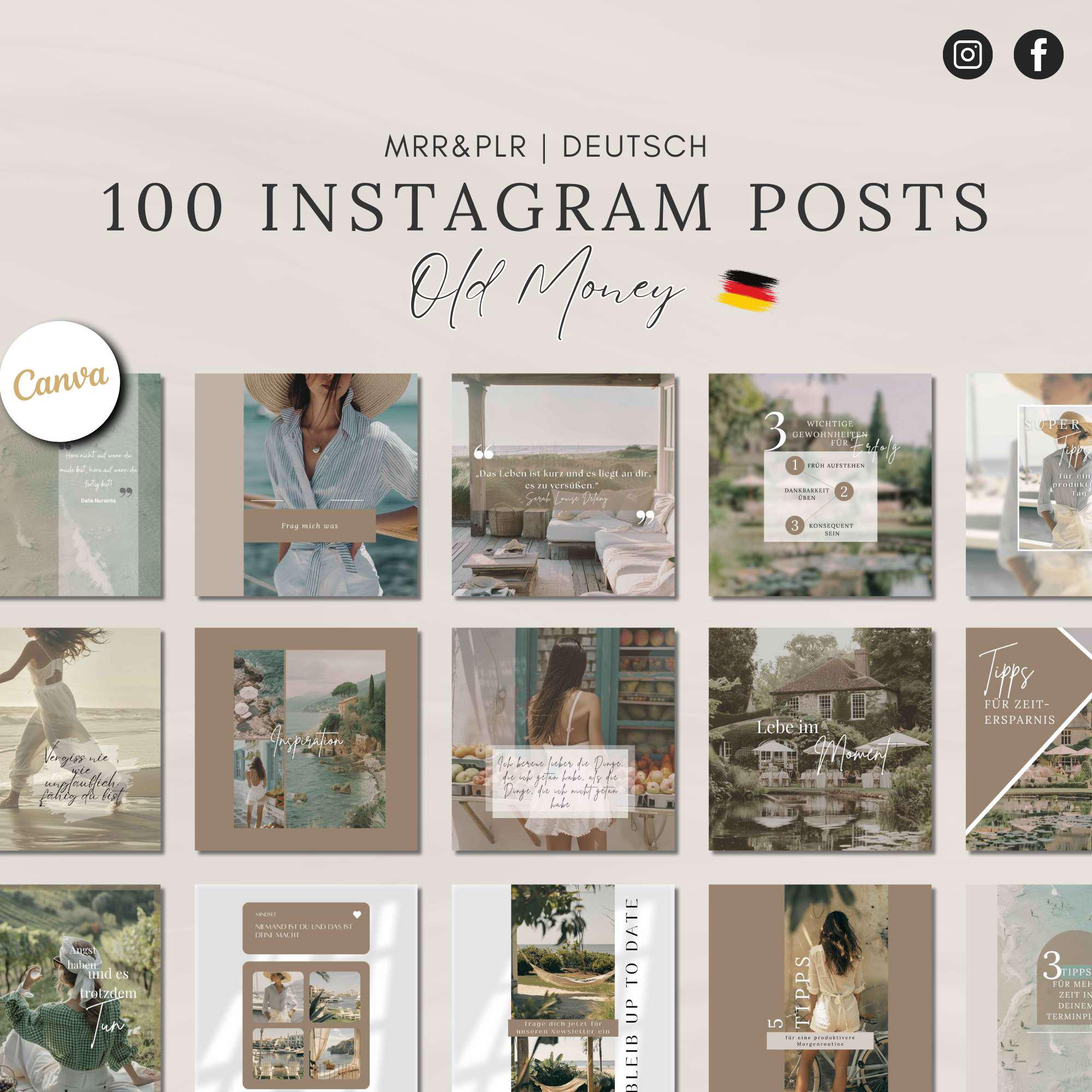 50 modèles Instagram sans visage au style Old Money - Allemand | Modèles Canva avec li...