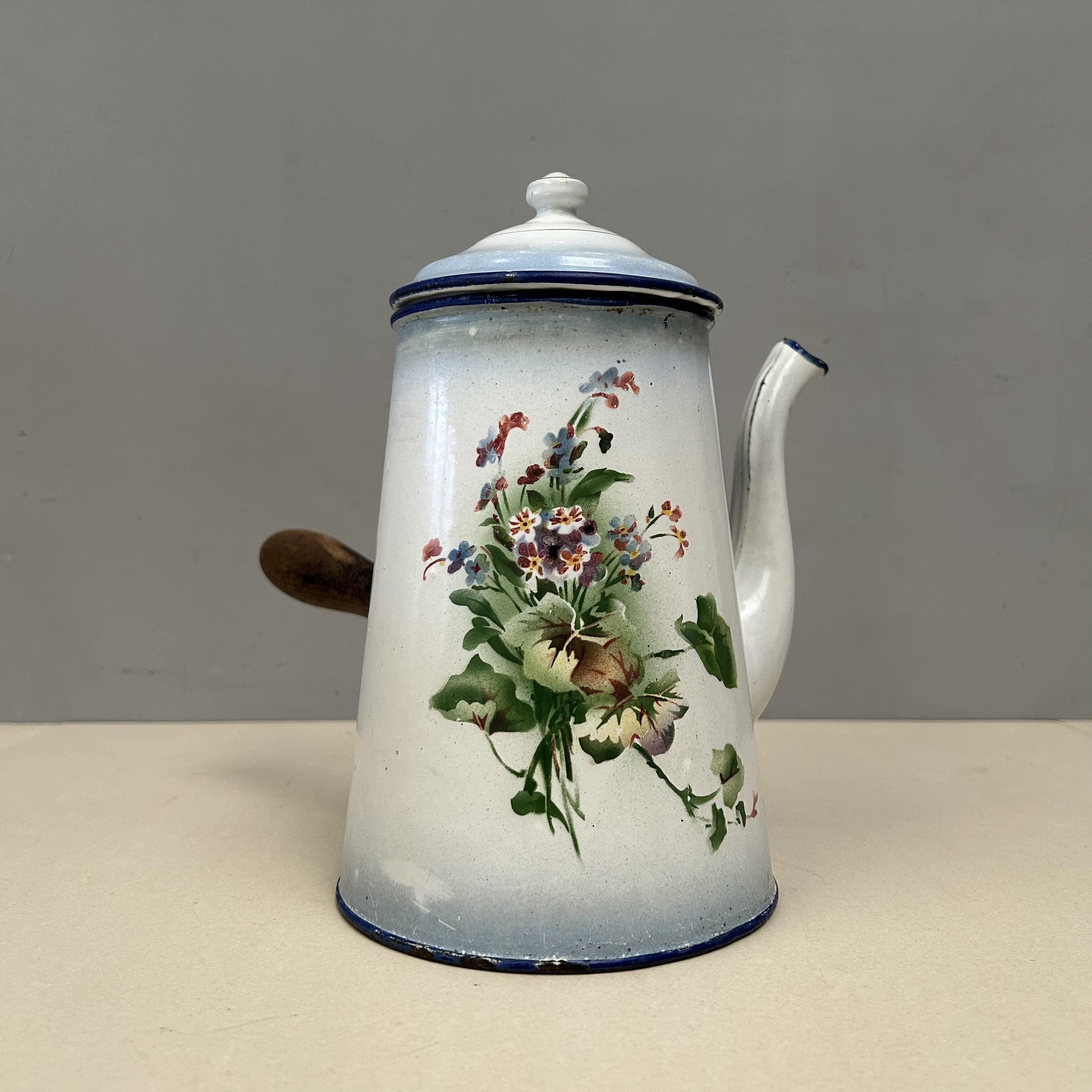 • cafetière vintage émaillée florale, pichet, bo...