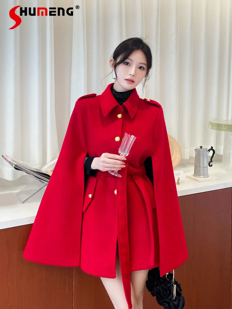 2025 automne haute qualité laine tissu châle Cape Poncho avec ceinture femmes mi-longue...