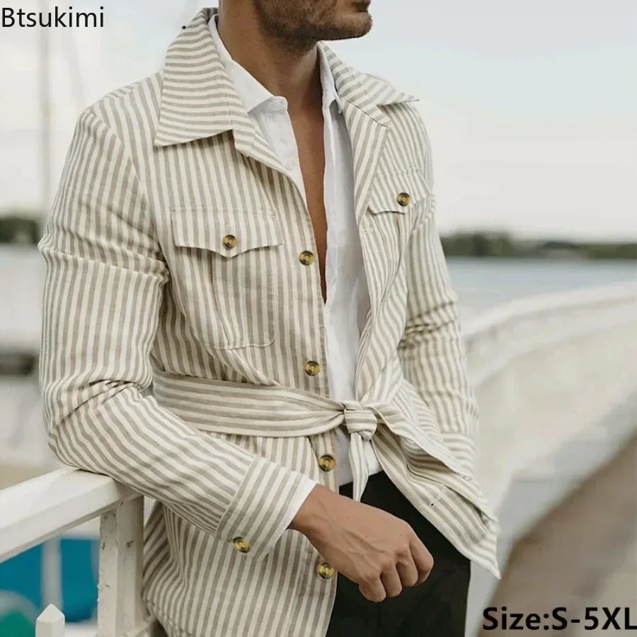 Nouveau 2026 printemps automne vêtements pour hommes tendance rayé multi-poches hommes ...