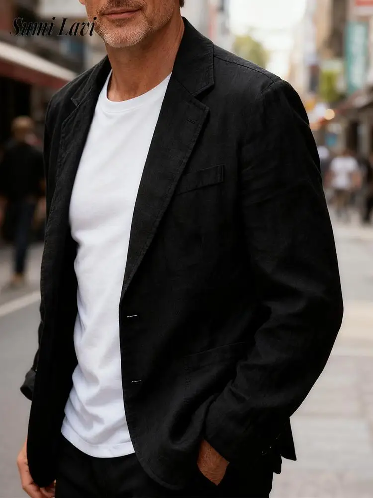 Cardigans Vintage en lin boutonné pour hommes, vestes décontractées en lin pour...
