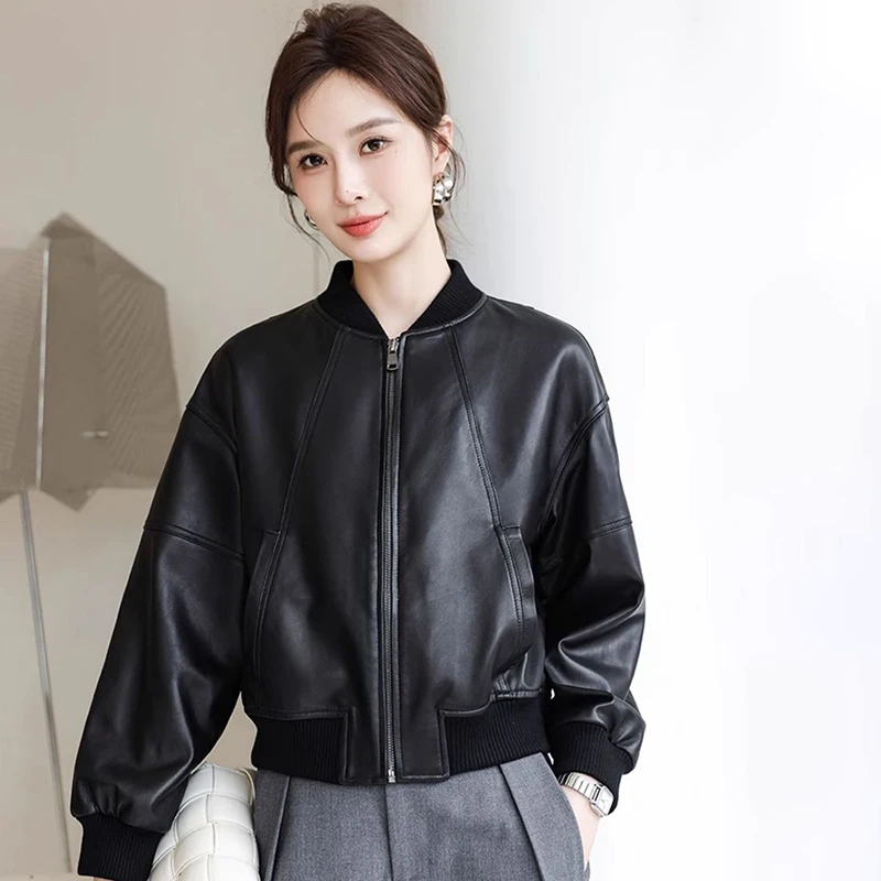 Veste en cuir noir haut de gamme pour femmes, nouvelle mode printem...