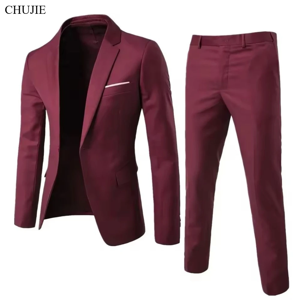 Nouveau Costume Homme décontracté mince deux pièces ensemble Costume Homme cost...