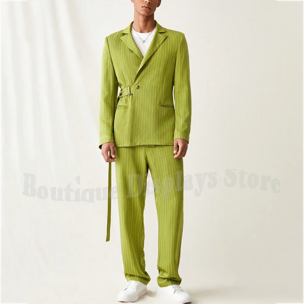 Costume Homme Rayé Vert Deux Pièces de Haute Qualit&e...