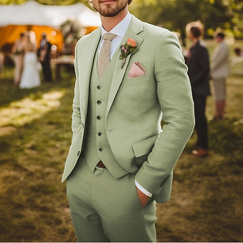 Pour des hommes Smoking Costumes en lin Mariage à la plage M...