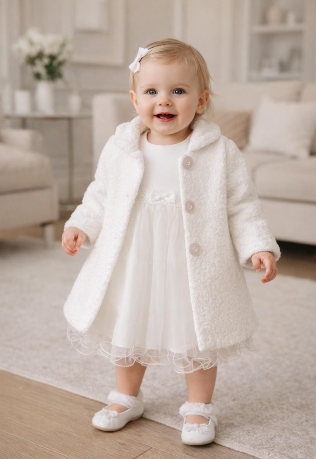 Taufmantel, Ecru-Farbe Babymantel für ein Mädchen, taille...